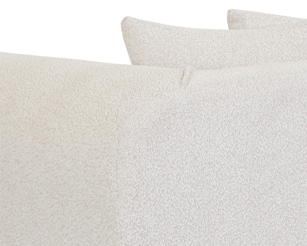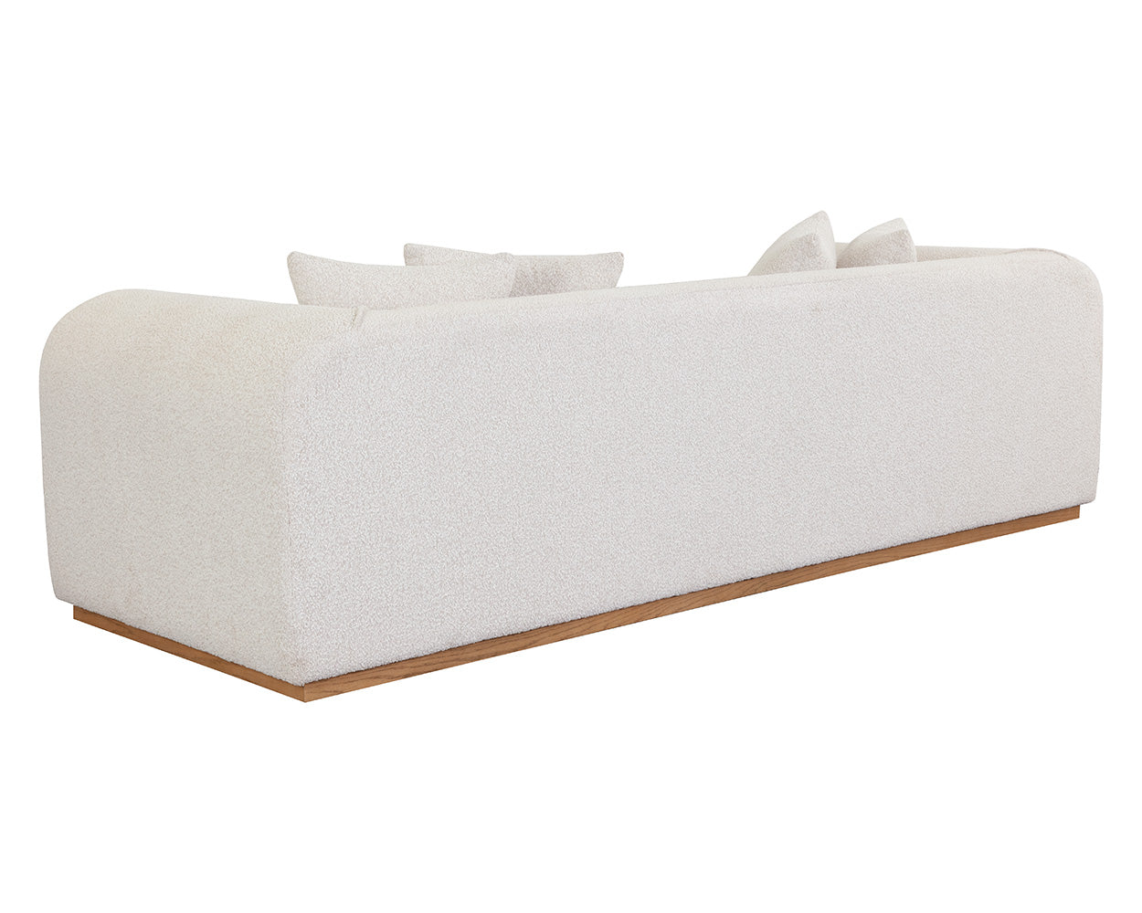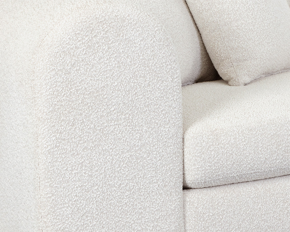Rounded curves lend the Caspian Sofa a soothing silhouette. Upholstered in our stylish boucle copenhagen white fabric with generous proportions for ultimate comfort. A light oak wood base complements the contemporary style.