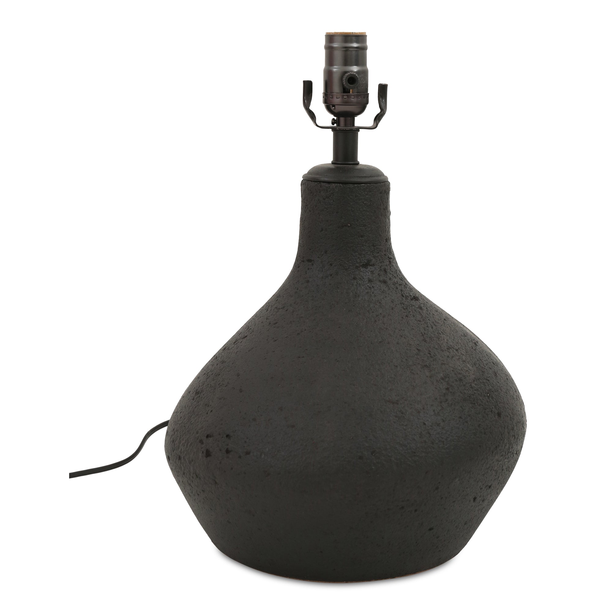 Inspired by the elements, the Hanna table lamp's textured, porous-like base is reminiscent of lava stone, while the textured cotton shade adds a softness to the weight of the piece. Made of a GRS-certified Ecomix, this material is both environmentally friendly and constructed under good working conditions with minimal harmful environmental and chemical impacts.