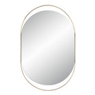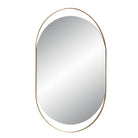 Transform any room with the elegant and stylish Ecru 40" Tall Pill Oval Mirror. Made with high-quality materials, this mirror boasts a sturdy construction that will last for years to come. The mirror features an oval shape, and the frame has a sleek satin brass finish that adds a touch of luxury and sophistication to any space. With its tall design, the mirror is perfect for any room in your home, providing a full-length view that makes it easy to get ready each day. Whether it's for your bedroom or living room, the Ecru Oval Mirror is the perfect addition to complete the look of any sophisticated space.