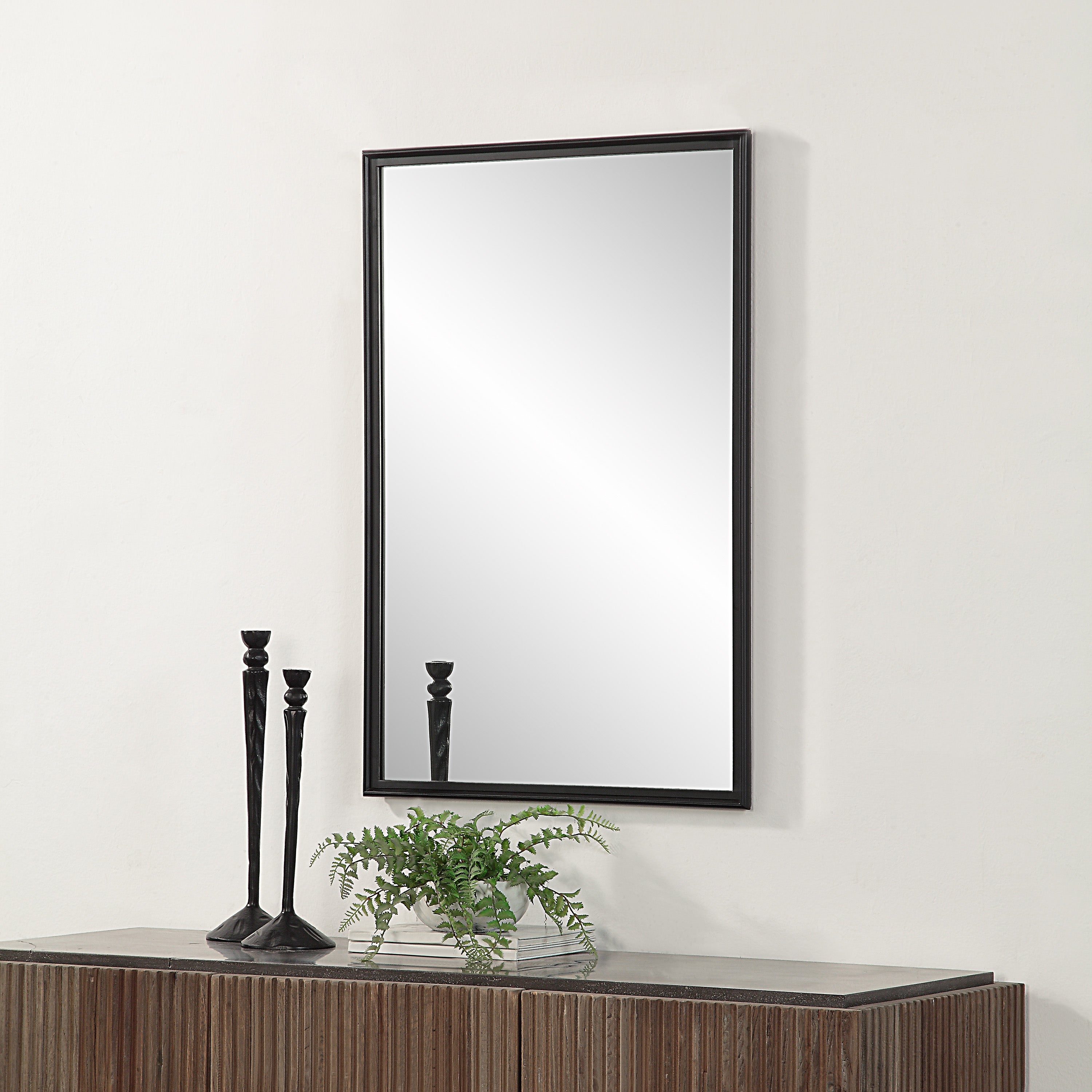 Upgrade your home decor with the Lausanne 36" Tall Rectangular Mirror. Crafted from high-quality and durable stainless steel, this sleek and versatile mirror is built to withstand the test of time. The rectangular shape adds a modern touch to any space, while the D-Ring hanging system allows for easy installation. With four-way hanging capabilities, this mirror provides versatile display options to fit any room. Don't settle for a boring mirror - elevate your style with its Matte Black finish that shows elegance.