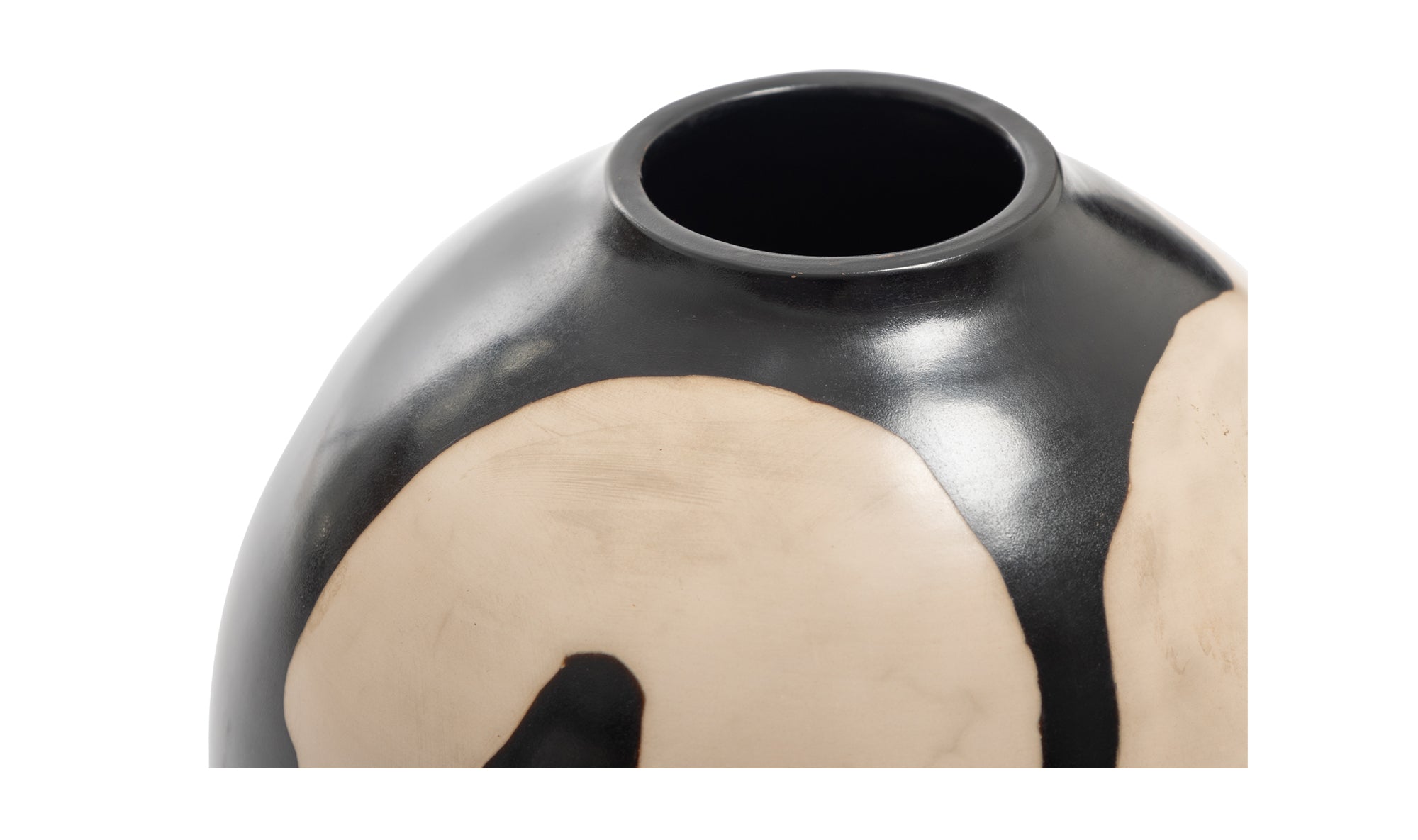 A journey through time, these vessels are handmade in the northern coastal city of Chulucanas, Peru using techniques dating back 1500 years. Each piece is individually formed, slip-decorated, then hand-burnished with a special stone to create a subtle luster. A distinct smokey scent lingers inside from the kiln fire it is born from. The Chulu vase is hand-painted with an abstract floral print referencing art nouveau and with a round, calming shape that breathes the beauty of ancient forms into any living space.