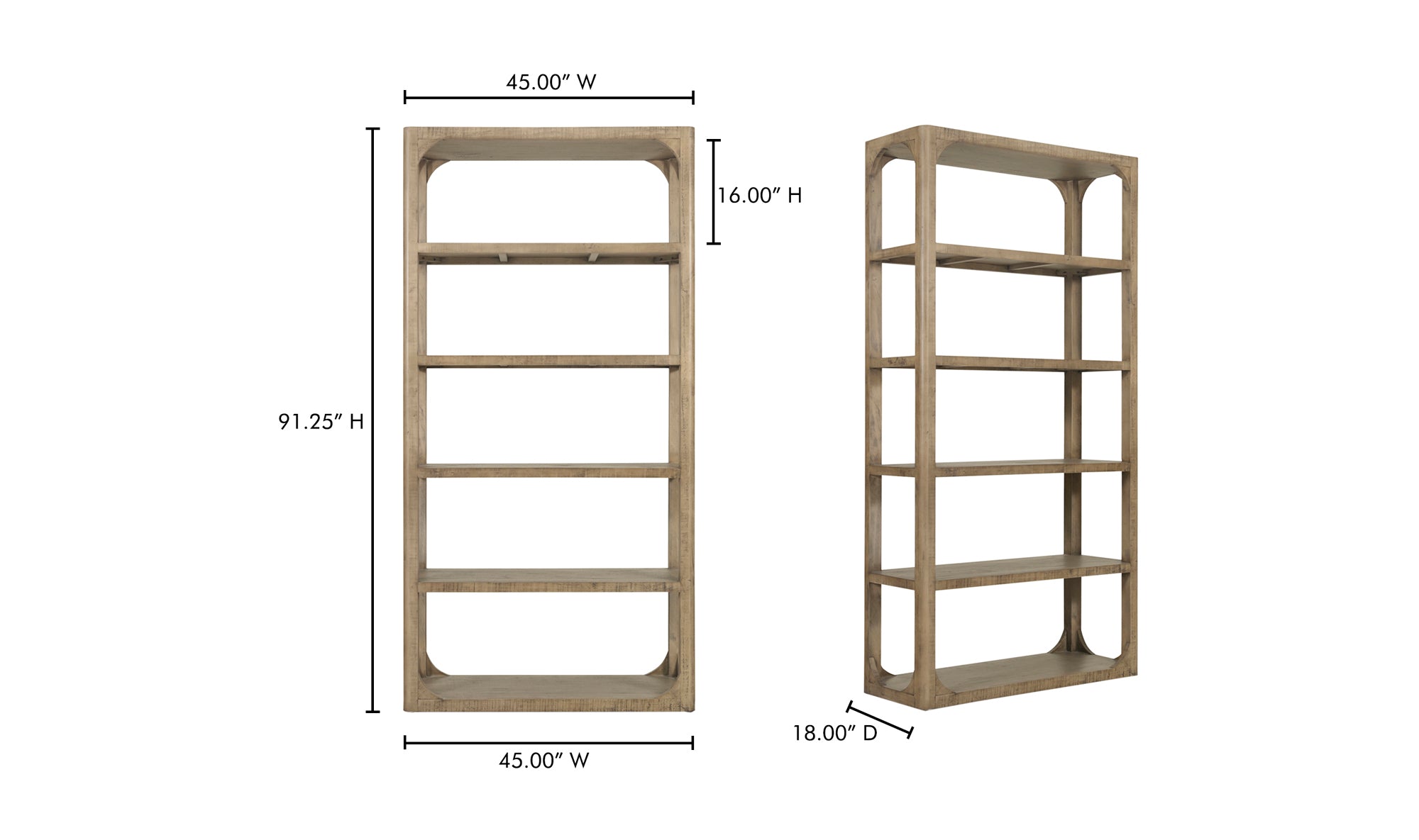 Crafted from solid pine, the Abbott Bookshelf radiates warmth and charm with its open-shelf design, offering versatile storage and display options. The bookshelf brings a touch of the outdoors indoors, combining the allure of nature with functionality.