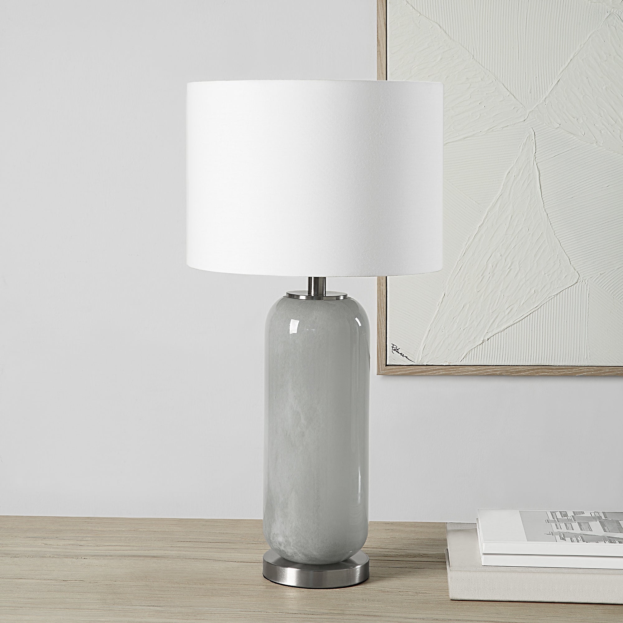 This glass table lamp carries an air of intrigue into the contemporary home. With grey and white details creating a cloudy, marble-like impression, it is best styled among accessories and furnishings that complements its cool colorway. In the bedroom interior, this table lamp elevates the zen atmosphere one hopes to create.