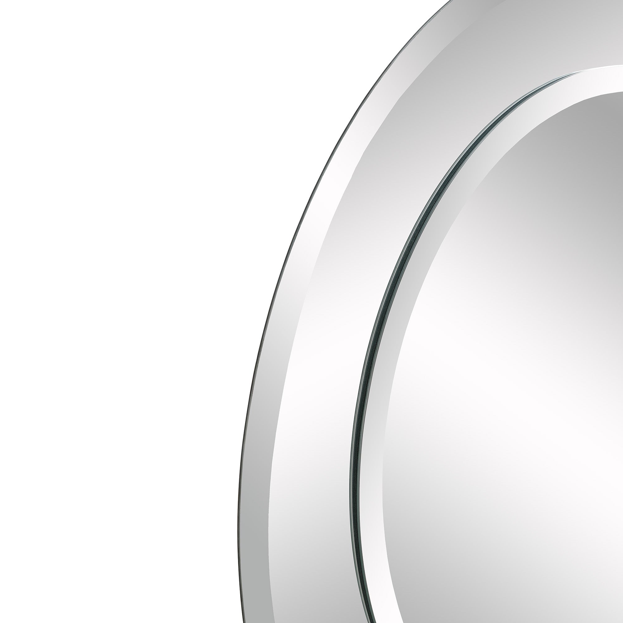 Bevel details bring dimension to this clear glass mirror. It casts a glow around a room when the light hits its smooth angles. With an understated glamorous quality, this round mirror pairs well with traditionally inspired furnishings.