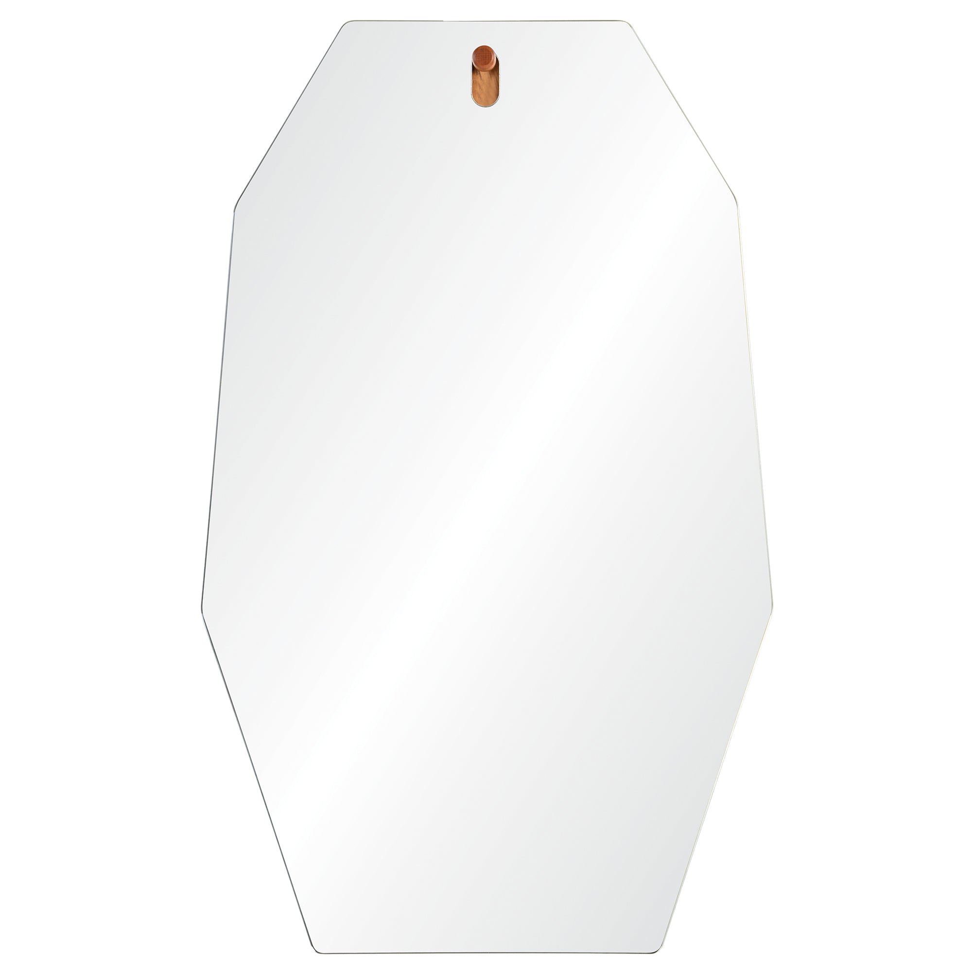 Accessorize modern walls with the minimalist appeal of this decorative wall mirror. A slightly beveled edge enhances the geometric mirror’s elongated octagonal shape while a notch at the top of the looking glass suspends the mirror from the wall by a simple peg. The style is austere, yet elegant – perfect for rooms with an appreciation for simple design forms.