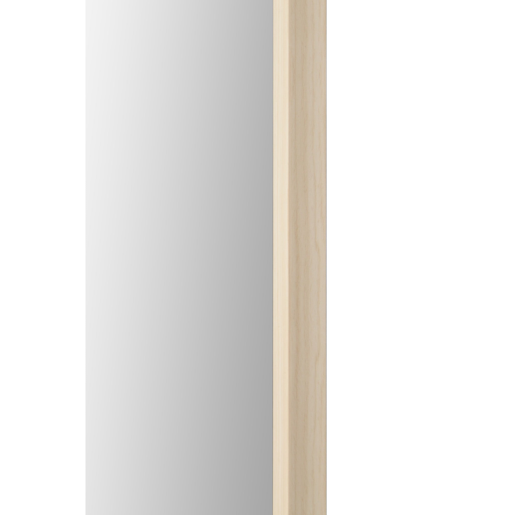 The soothing space gets a polished upgrade with this mirror in its midst. With a light natural wood grain frame, it effortlessly integrates into the neutral-toned interior. Capable of hanging vertically or horizontally, it holds several design options within the home.