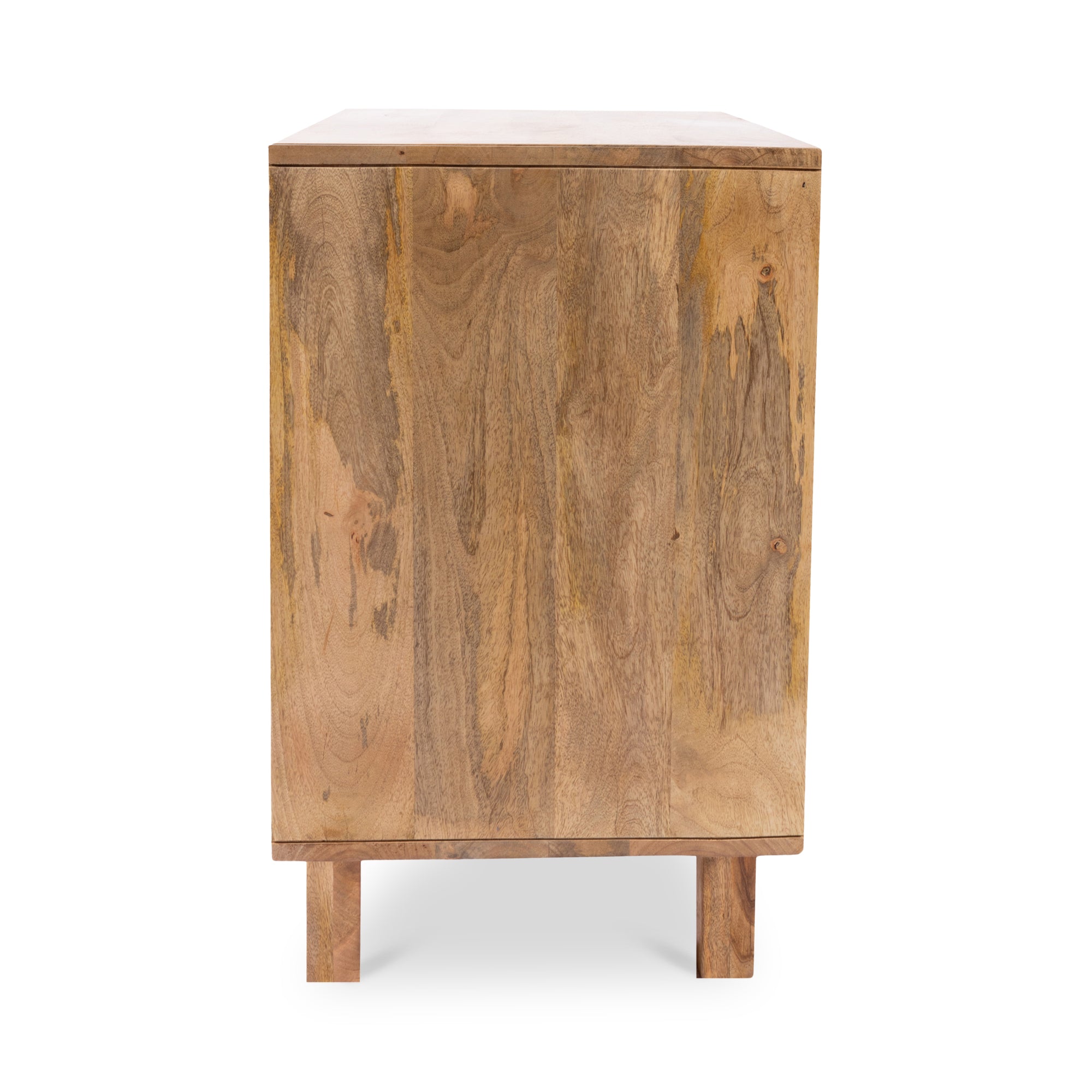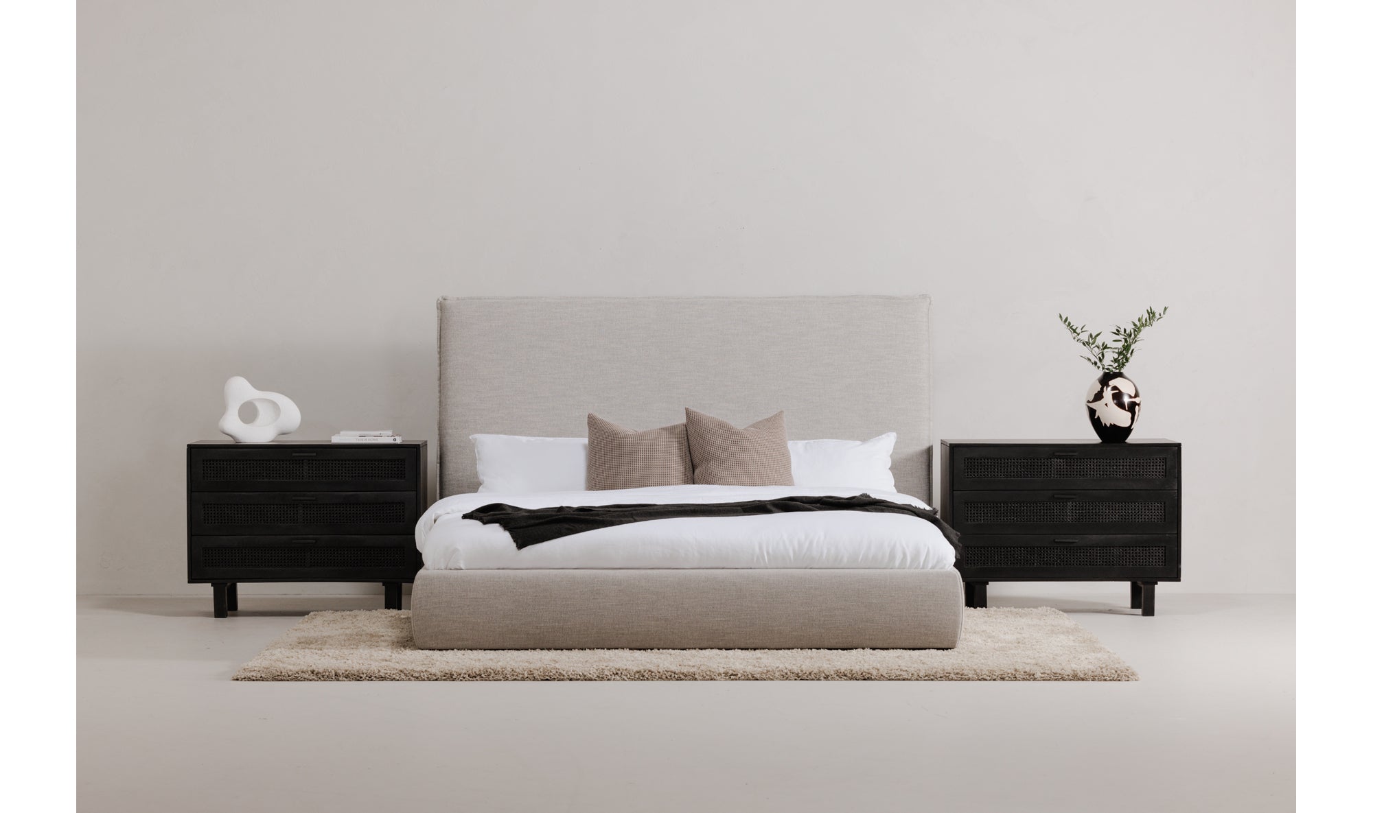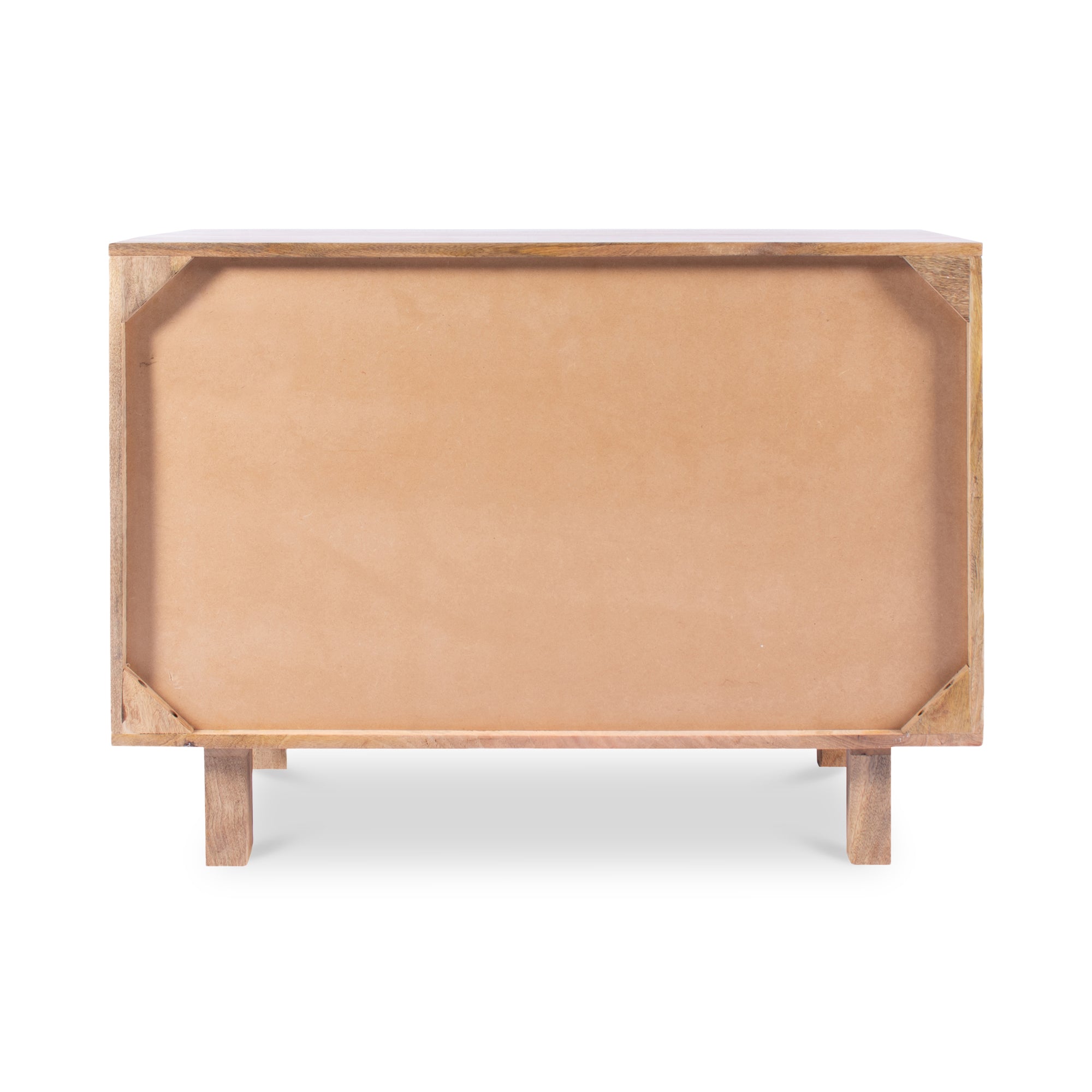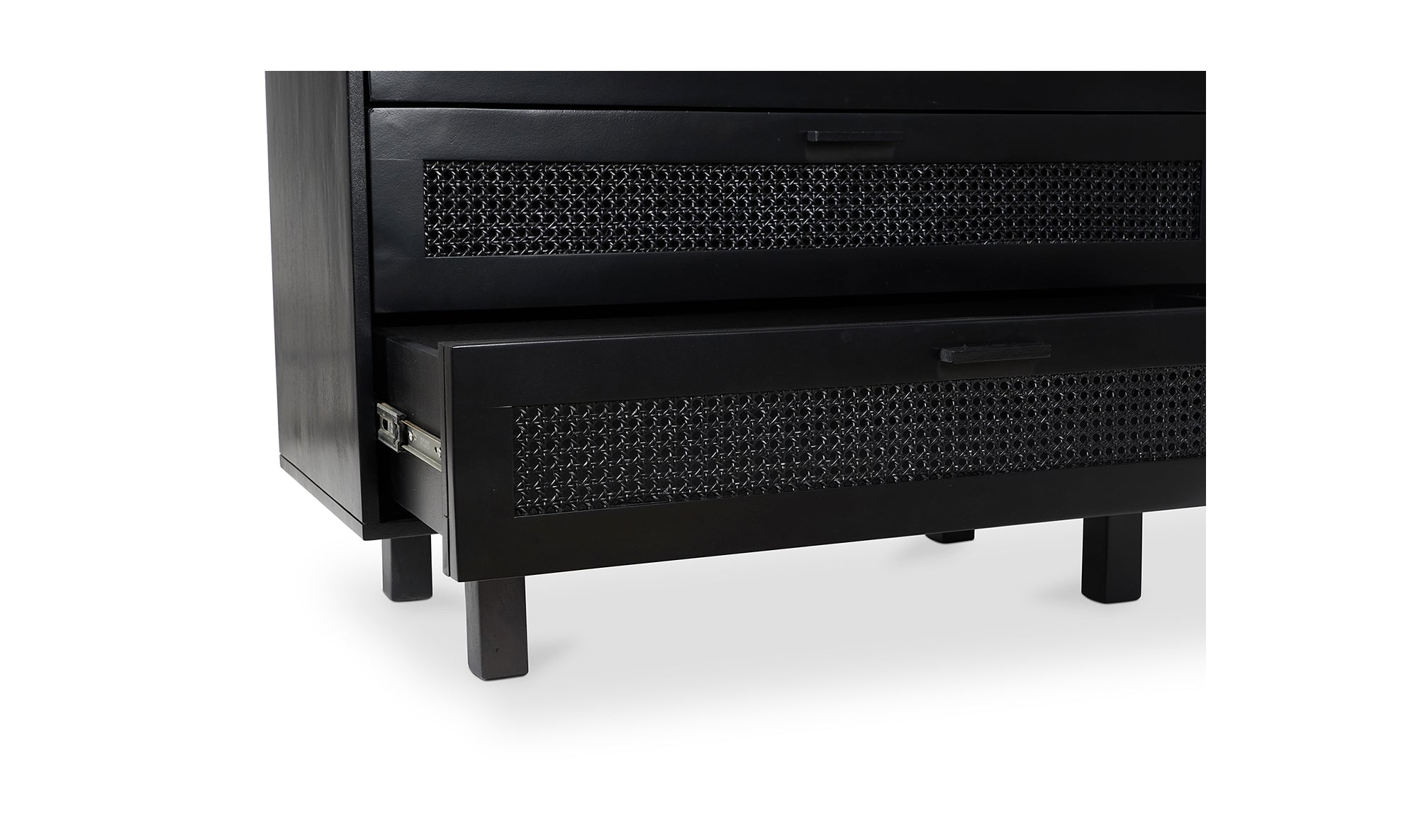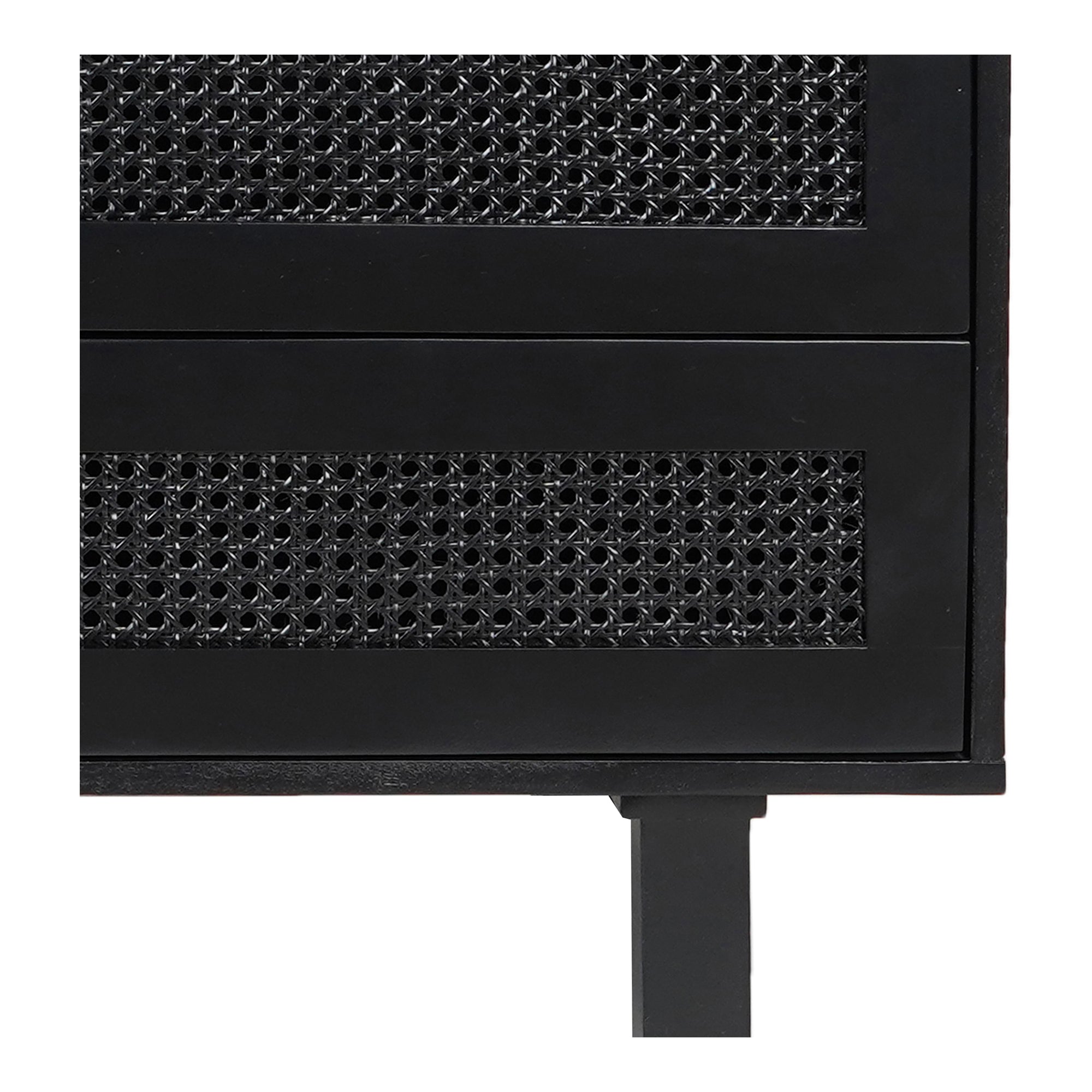 A stylish combination of solid mango wood and an intricately designed cane drawer front gives the Ashton nightstand a fresh contemporary style. Three spacious felt-lined drawers gently slide on ball-bearing glides allowing you to access knickknacks, essentials, and everything in between.