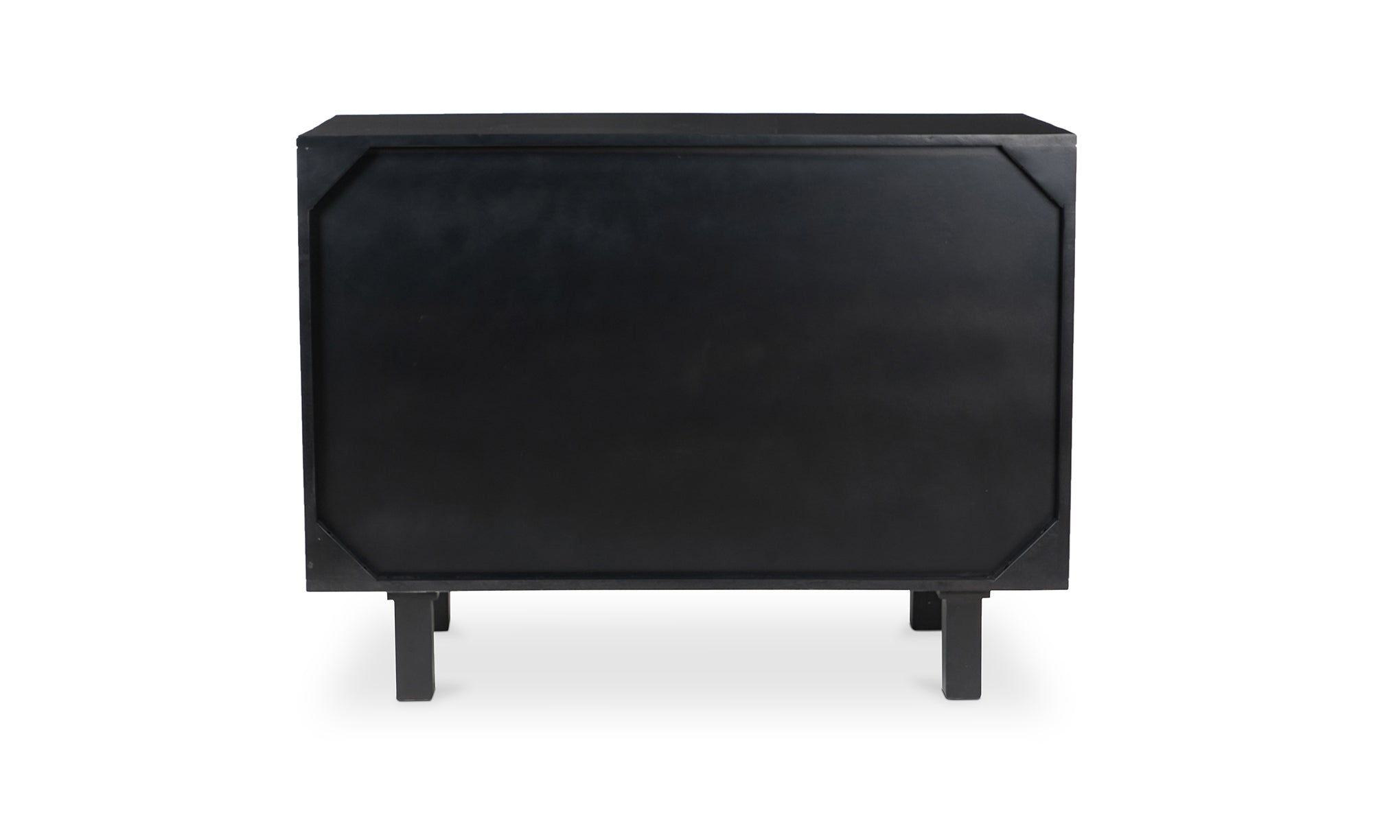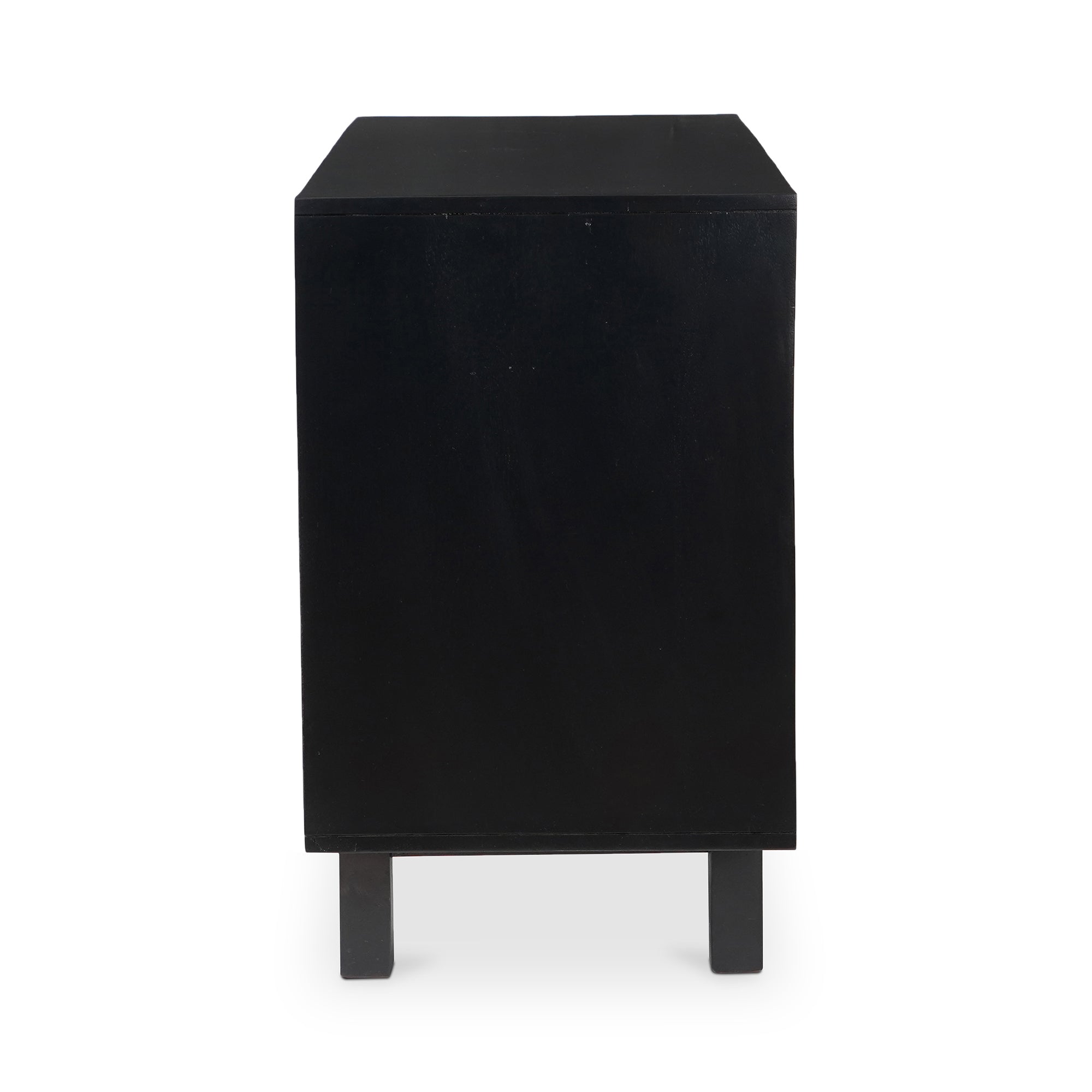 Solid mango wood with a matte black wood finish. Constructed from mango wood sustainably sourced from trees that no longer produce fruit