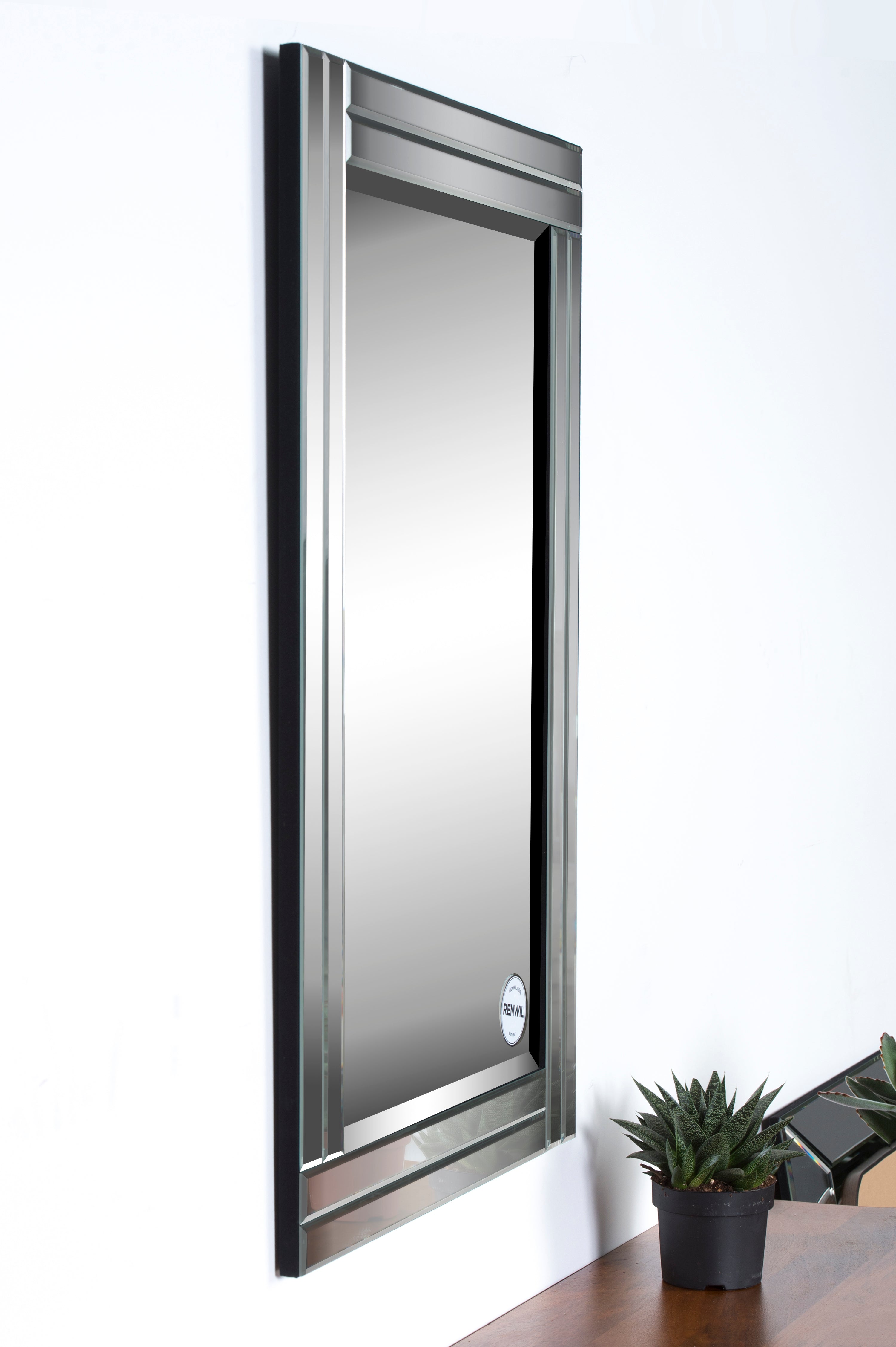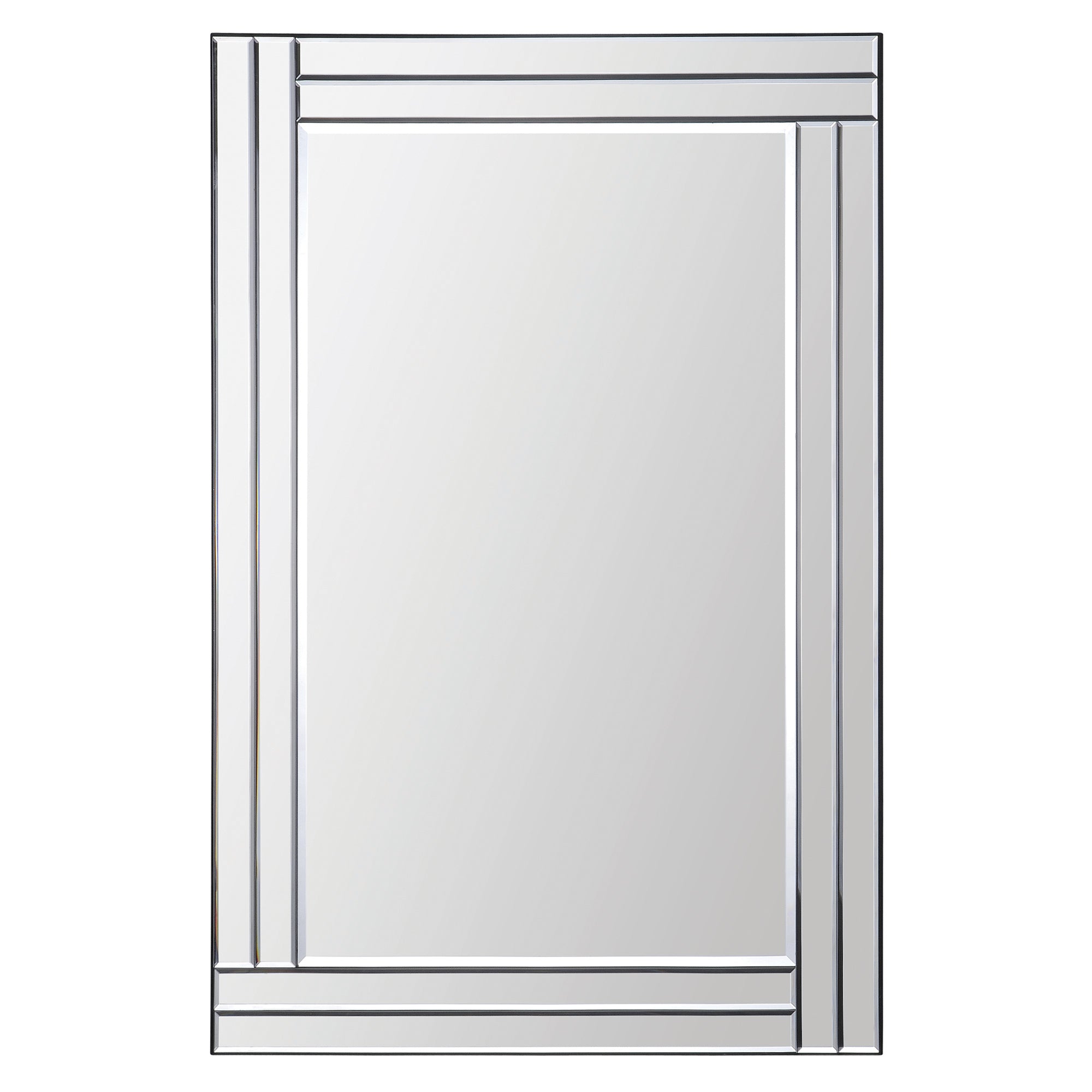 This contemporary design features a dimensional beveled-mirror "step" frame that is staggered around the beveled center mirror. With its sleek look and clean lines this mirror is a great look that surely earns the "wow" factor.