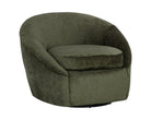 Designed with an irresistibly curvy shape, this contemporary swivel lounge chair is the perfect accent piece to make a statement in any room. Upholstered in abbington hunter green fabric with a black powder coated stainless steel base. Also available in husky grey fabric with a black powder coated stainless steel base.