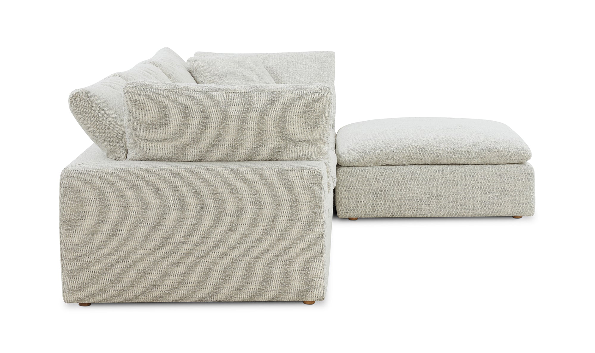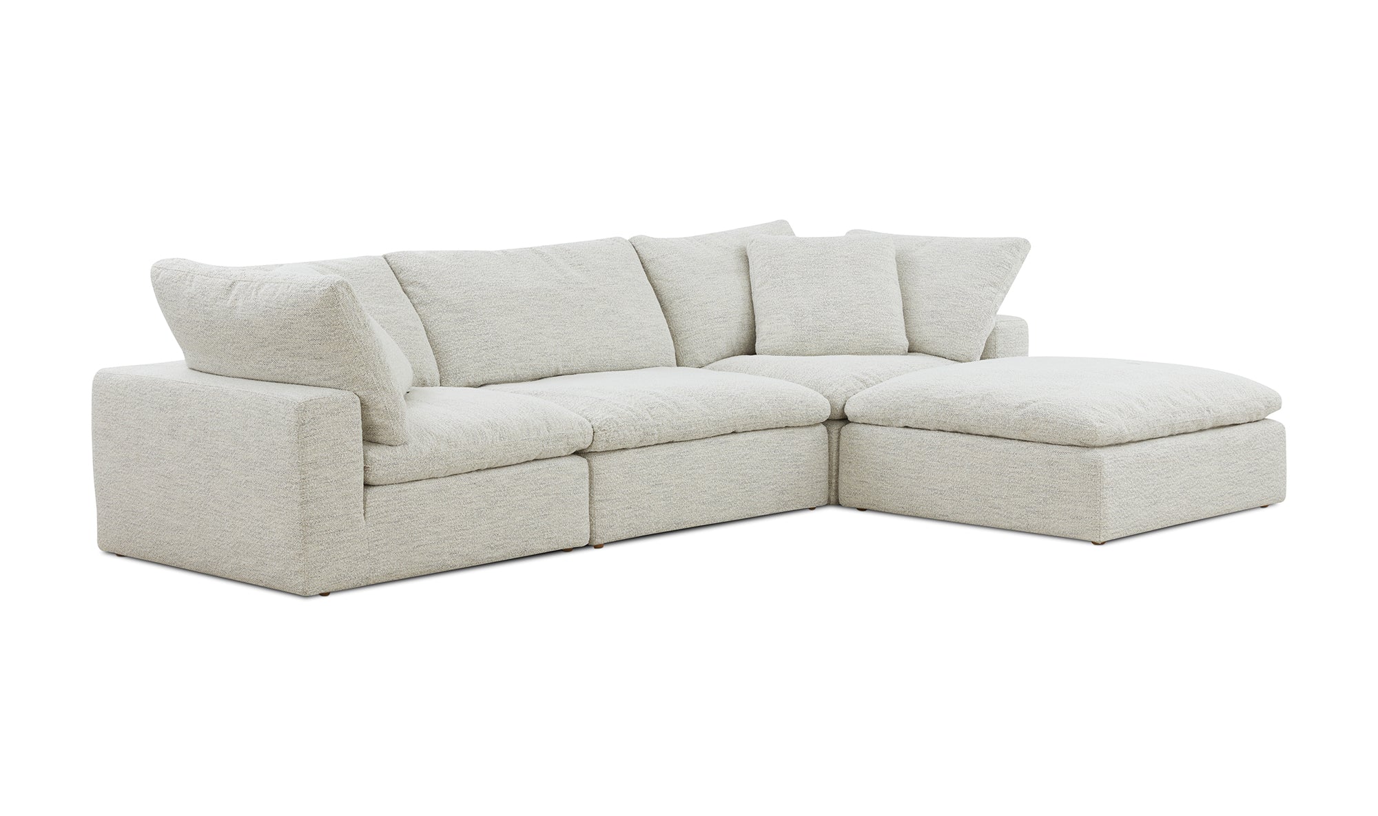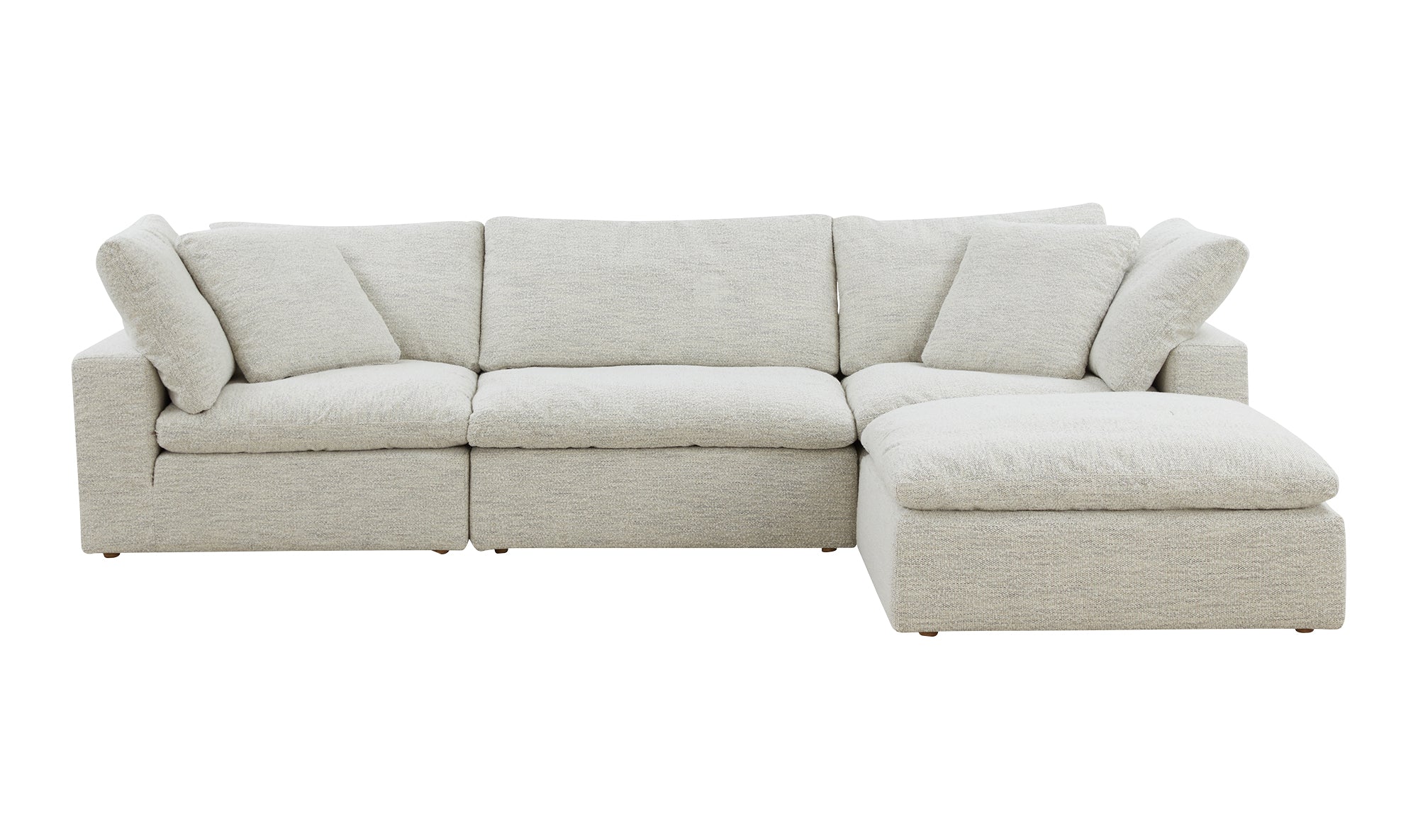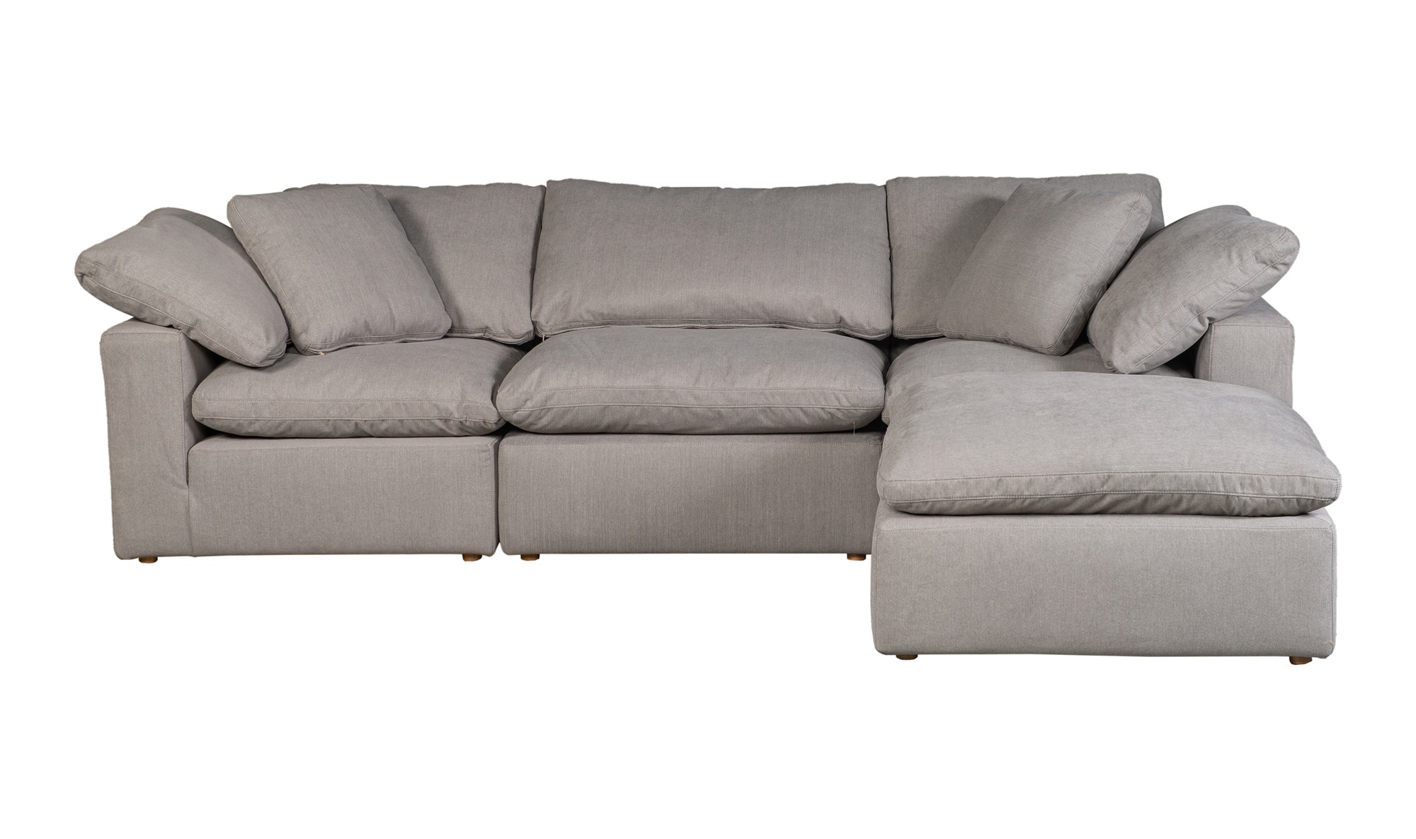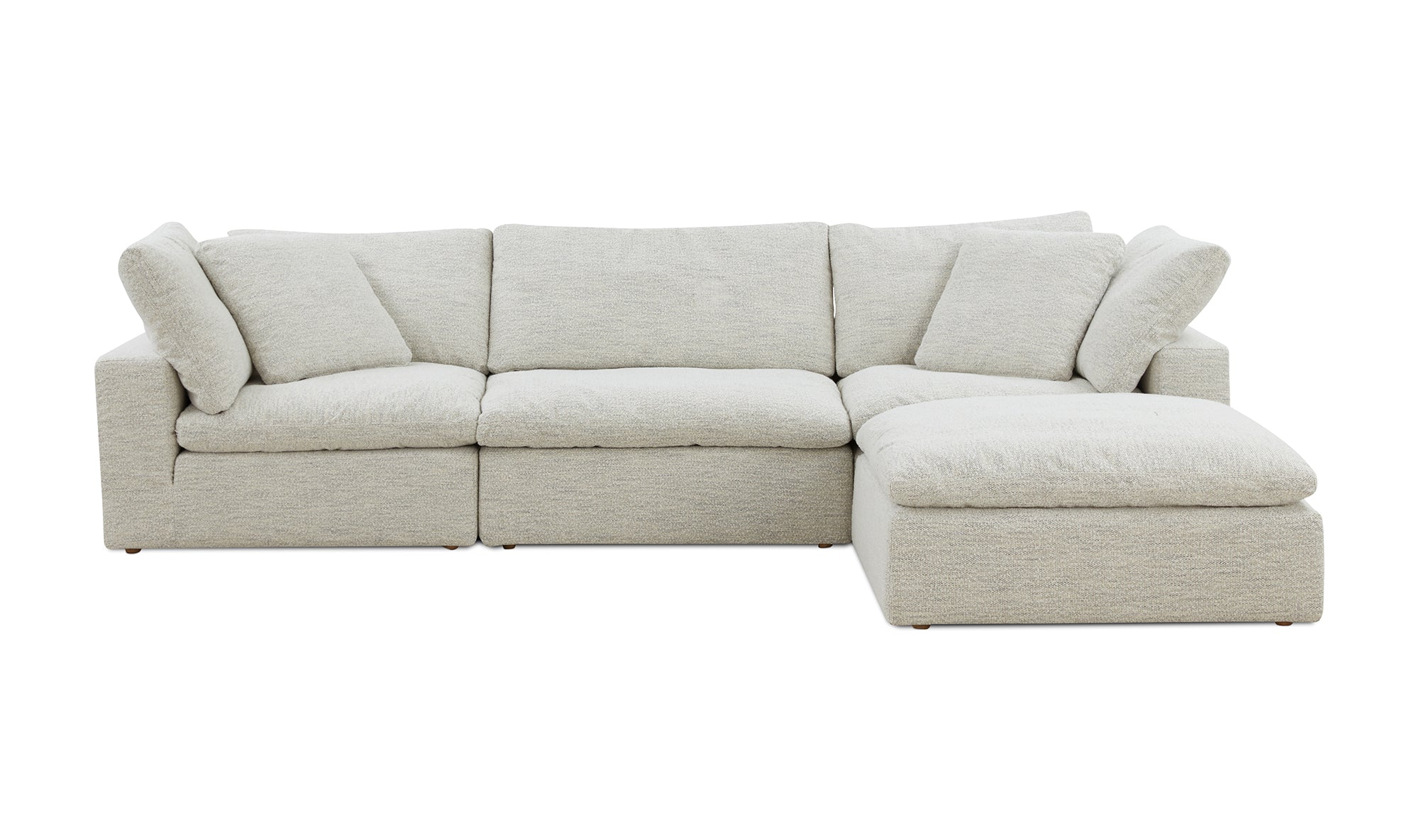 A sectional that's ready for all the messes involved in running a busy household. The Clay modular sectional is upholstered with our NeverFear™ Performance Technology Fabric, that is moisture repellent, stain resistant and offers barrier protection. Its cushions are filled generously with feather and fiber blend, and channeled and double wrapped to maximize durability. The top eight inches cushioning is filled with foam making it ultra comfy and family friendly. Its capability of minimal maintenance and modularity allows you to stay stylish while having your desired configuration. It is truly a great value added to any space.