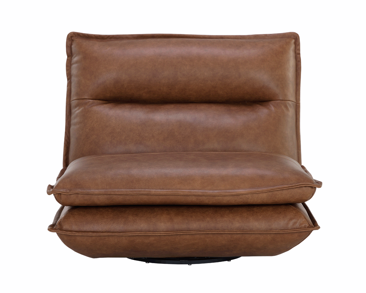 The Colson Swivel Armless Chair pairs causal comfort with contemporary design. Expertly upholstered in our cognac Italian leather for a luxuriously smooth touch. Handle with Care: This design has been crafted with leather. Leather is a natural material; as such, colour variations, markings, wrinkles, grooves and light scratches are acceptable and appreciated characteristics. No two pieces are alike. Visit our Product Care page for more information on how to ensure the lasting beauty of this piece.