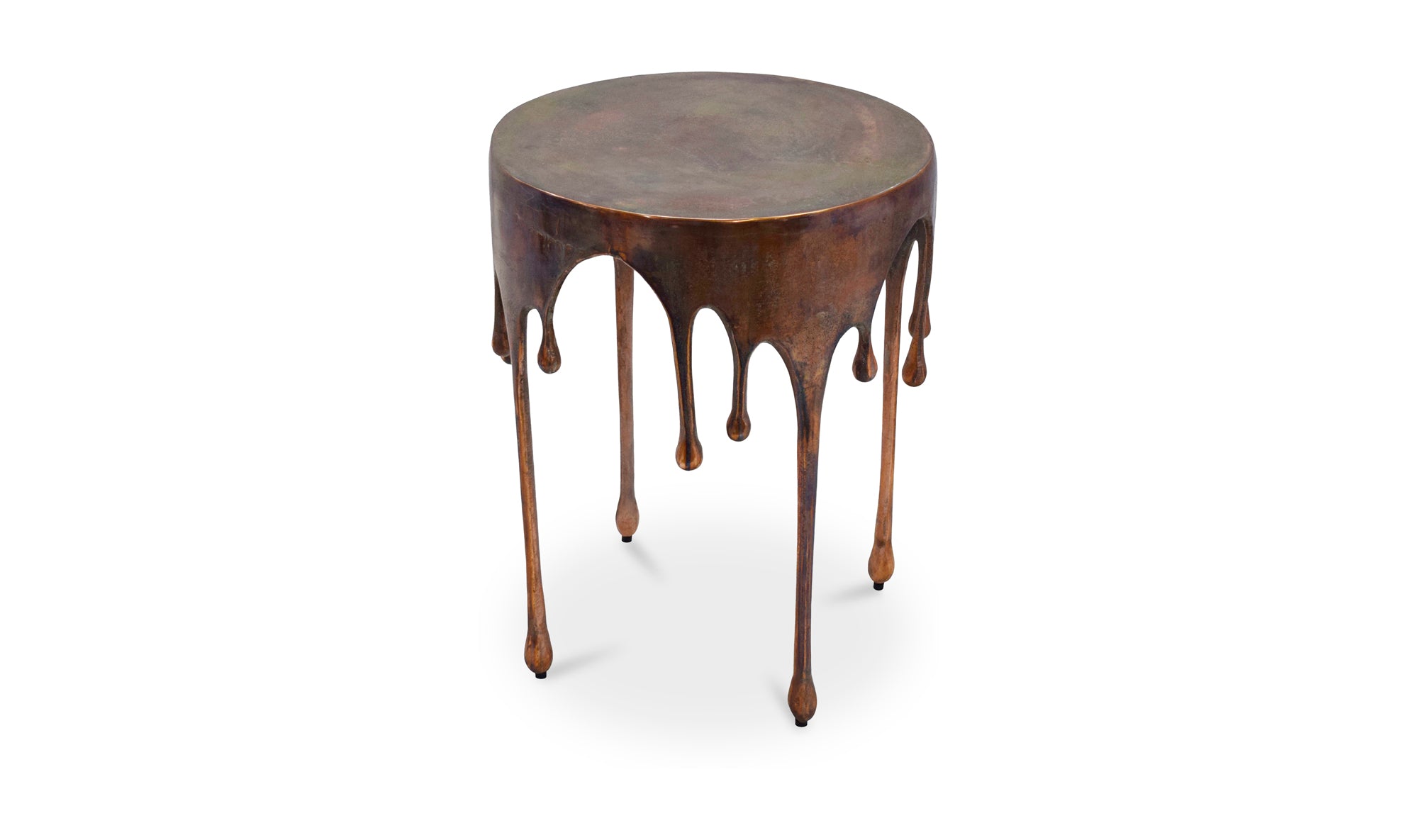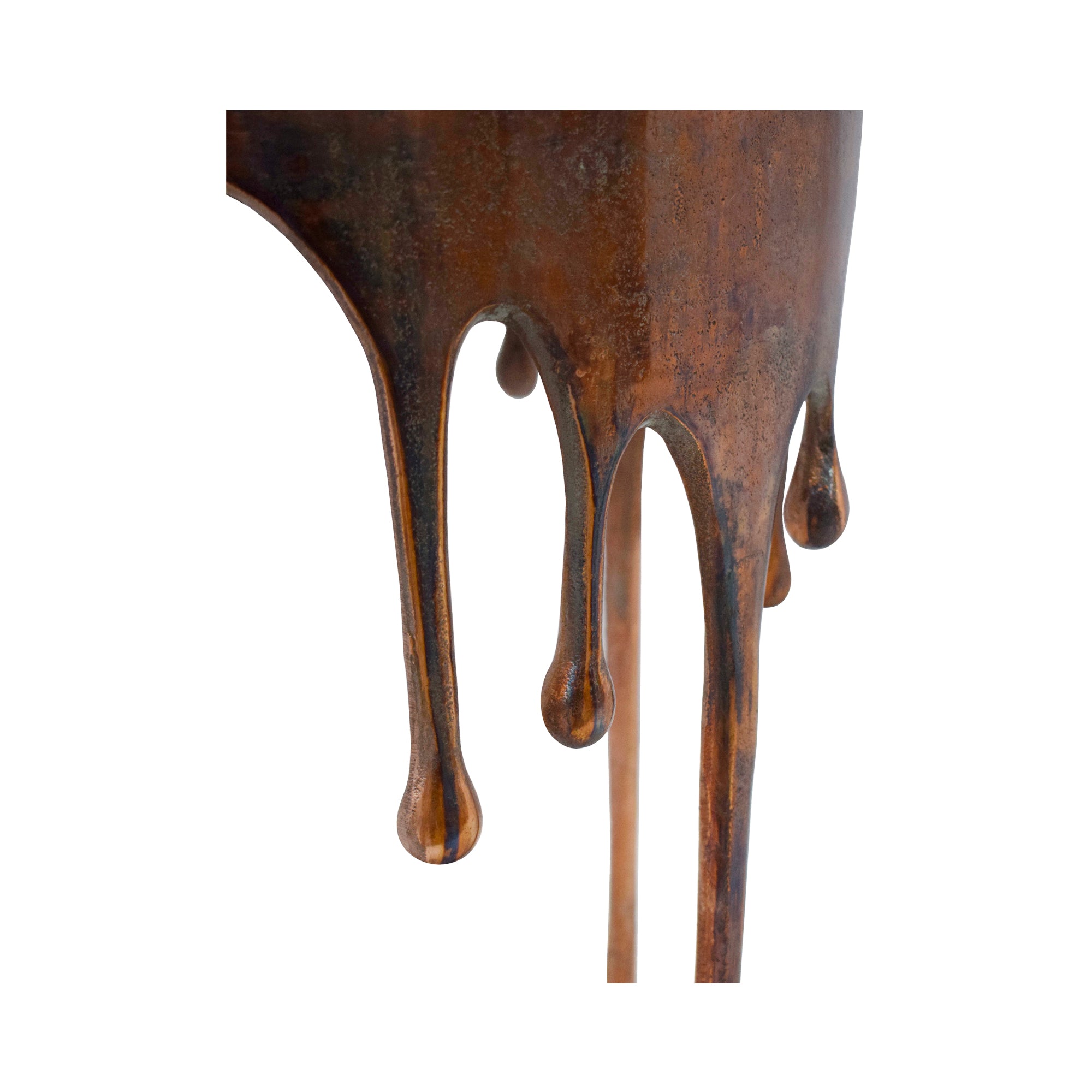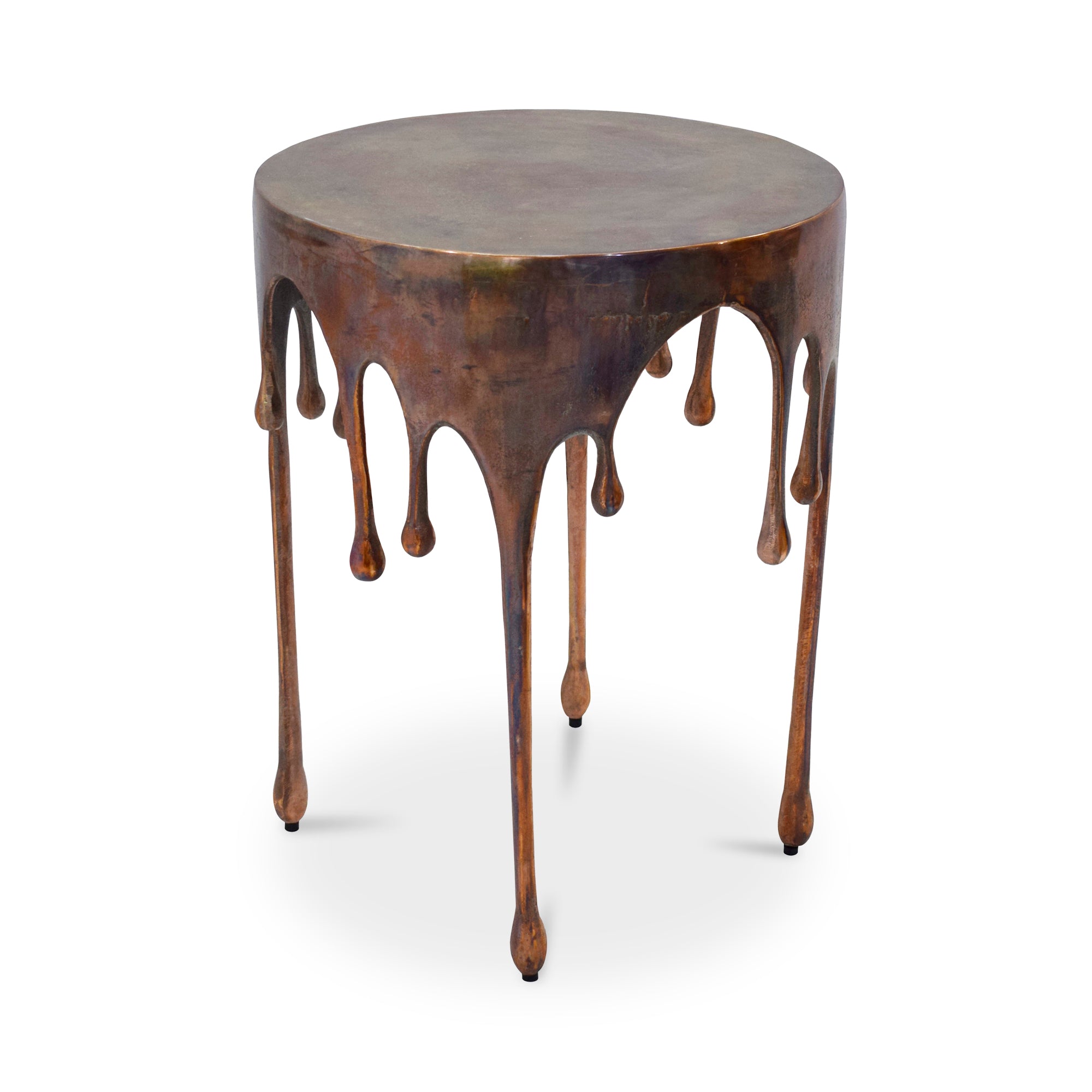 An accent table's standard look is thrown aside for a more unique look with the Copperworks accent table that presents itself as a dripping candle. Made in solid metal to show off an industrial design, this living room furniture will inspire excitement and intrigue with its statement design.