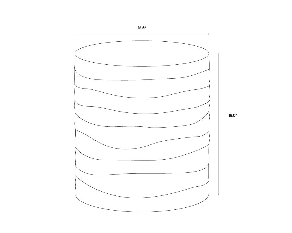 This round side table will create a moody environment. Crafted from concrete, this piece features hand sculpted ridges with a painted brass finish. The perfect addition to living, lounge and office spaces.