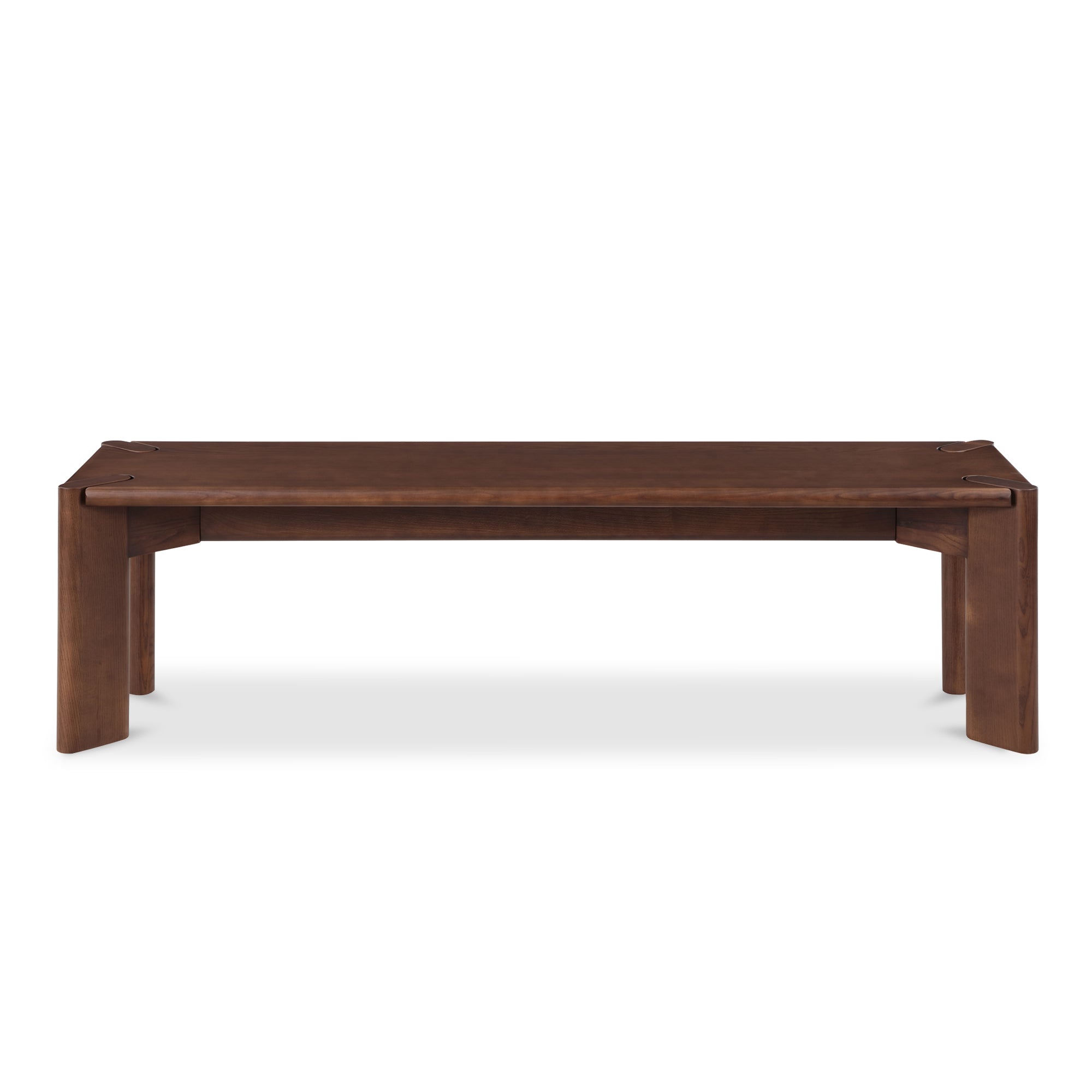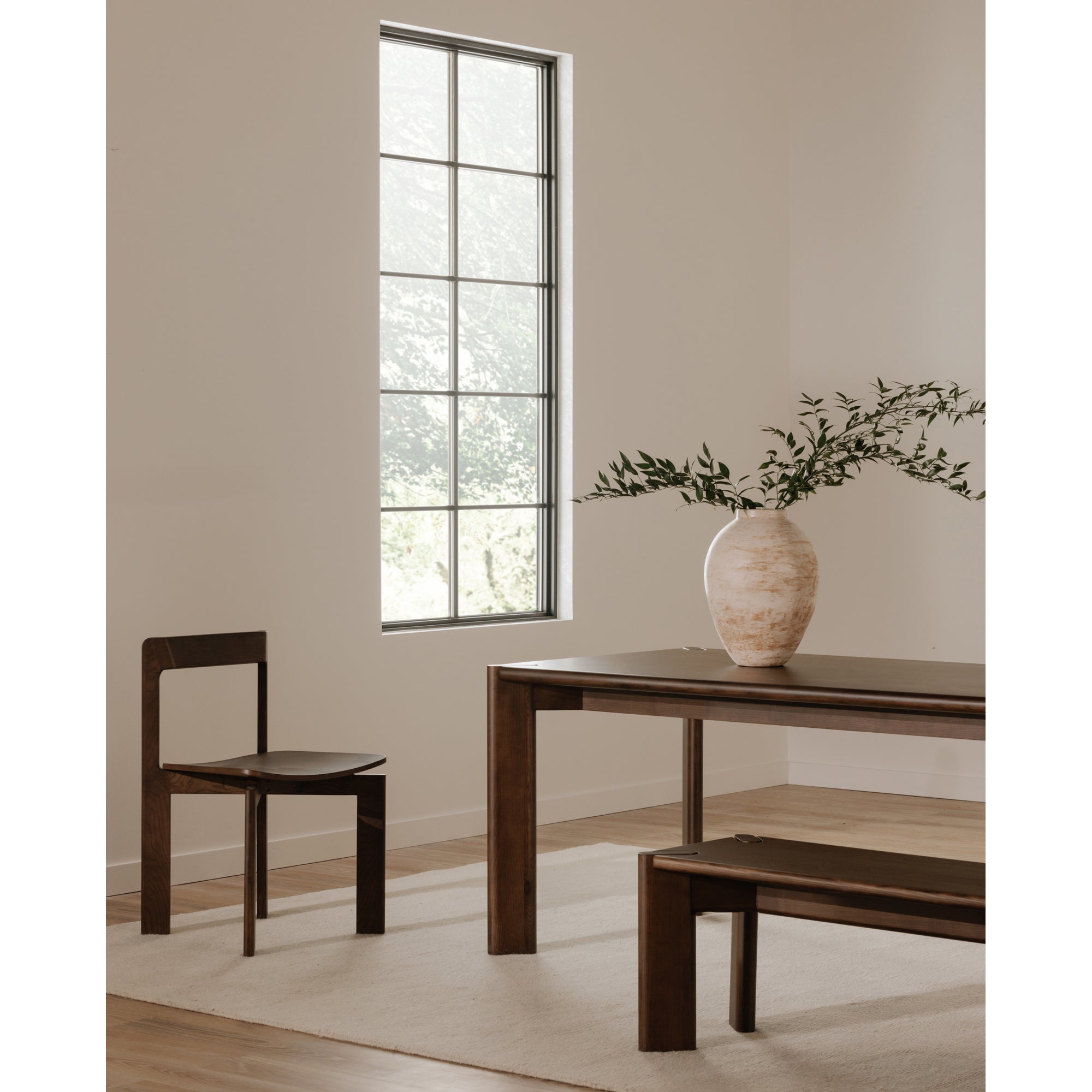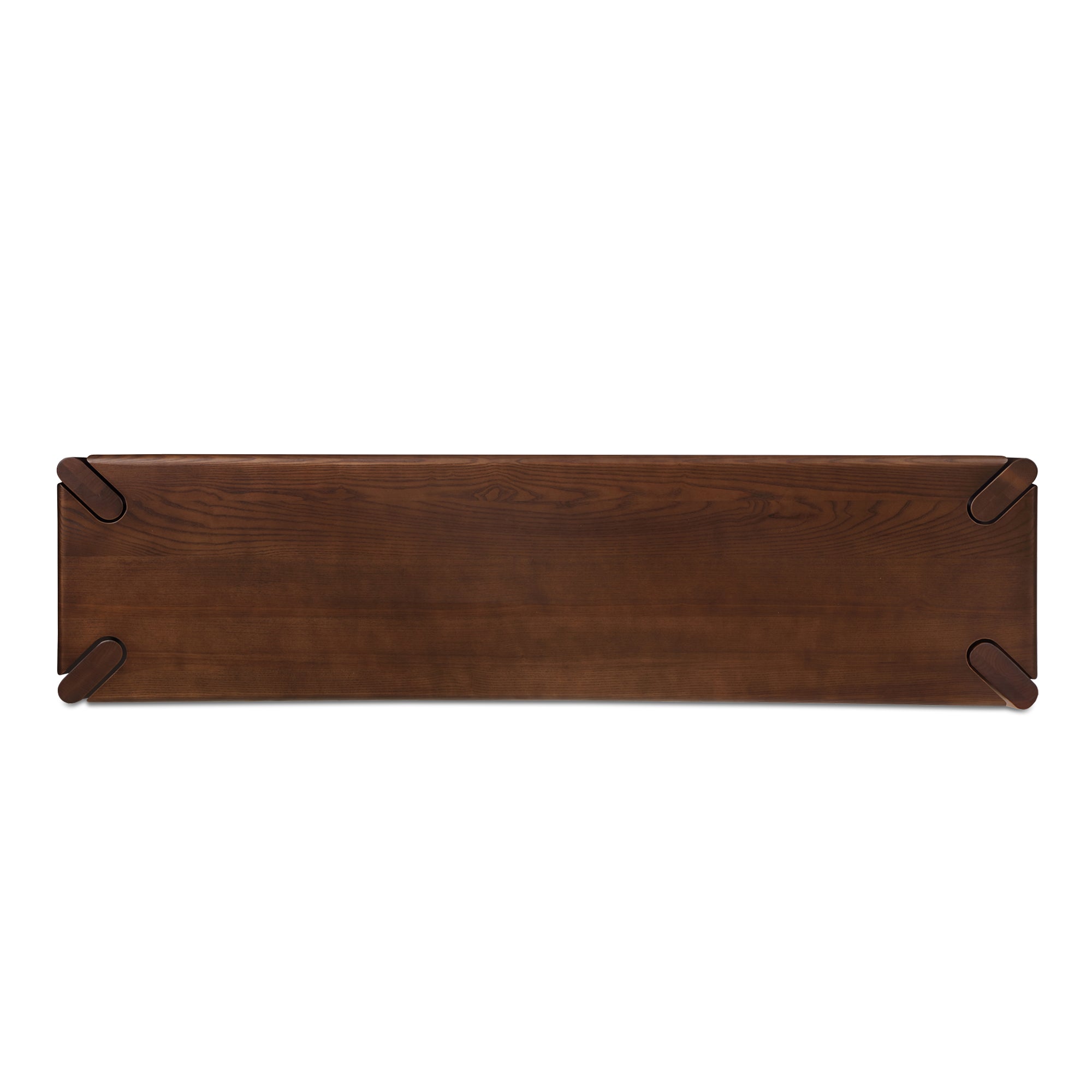 Inspired by the softness and symbolism of Japanese mochi, a traditional soft rice cake whose name translates to good luck, the Daifuku dining bench features rounded edges that create an illusion of gentle softness while bringing comfort to reality. Exquisite craftsmanship meets the allure of Japanese tradition as joinery detailing underscores the bench's walnut stained ash construction, perfectly balancing strength and grace.