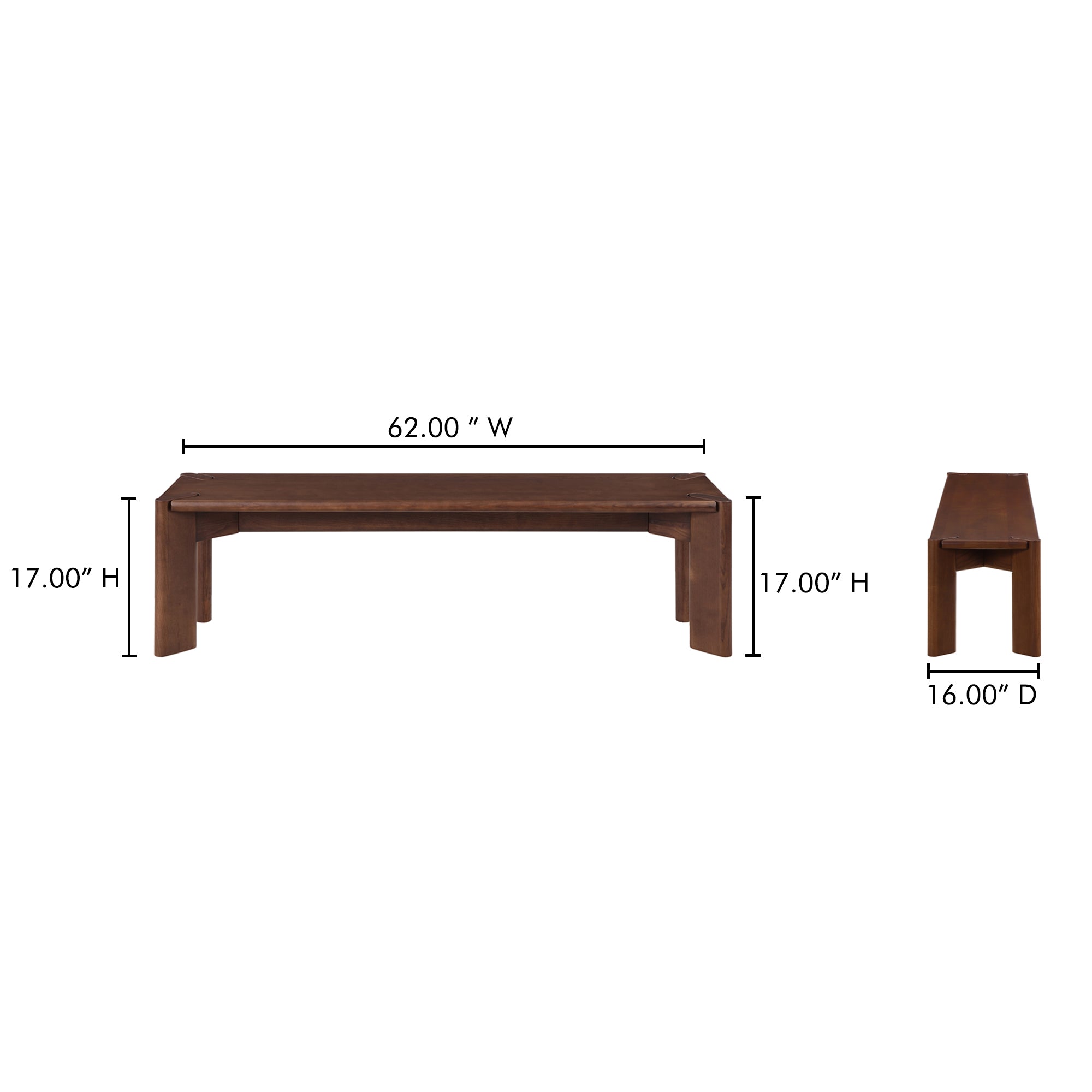 Solid walnut stained ash construction featuring dowel joint joinery & 3-person seating capacity