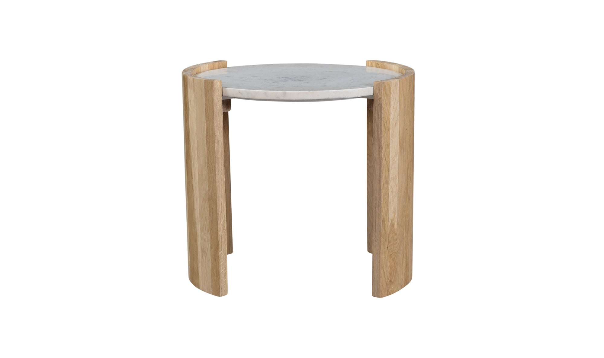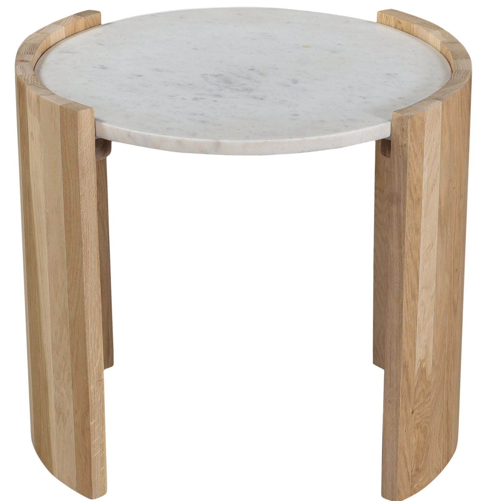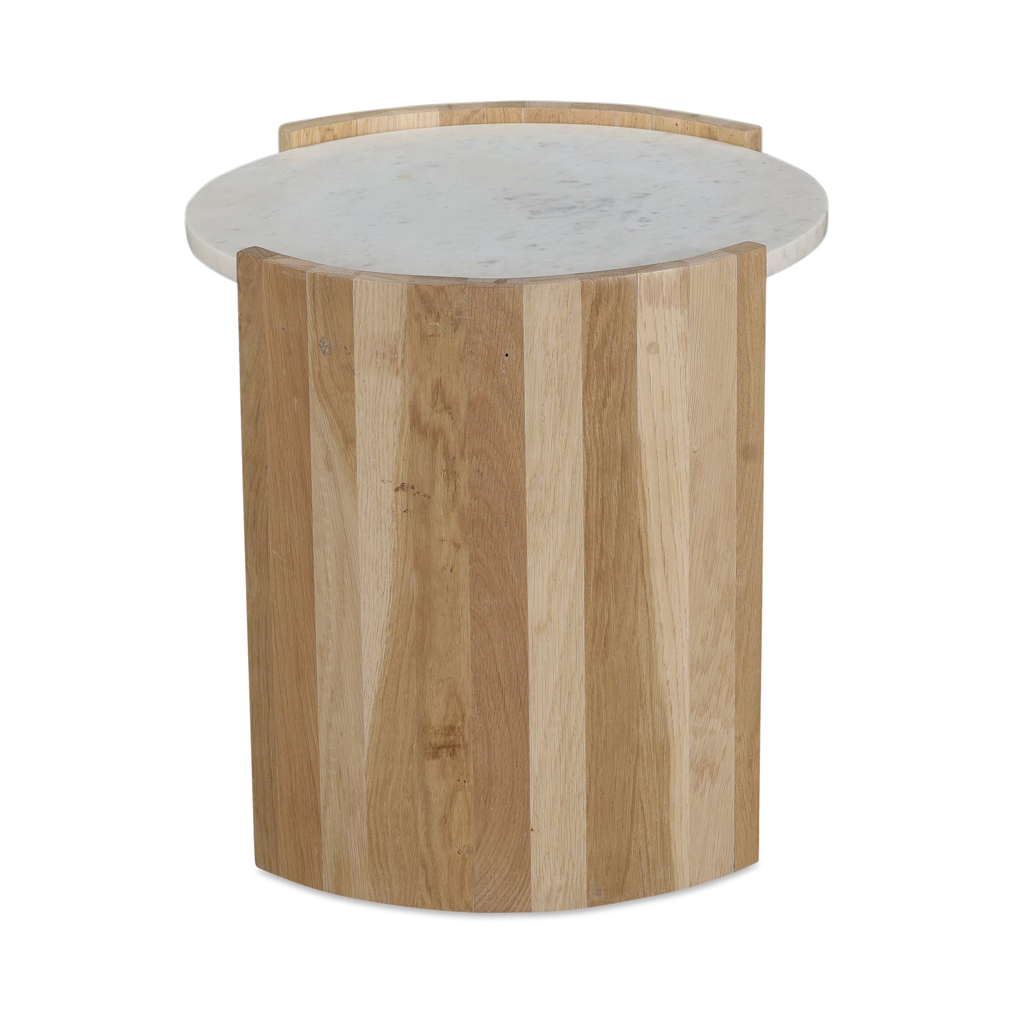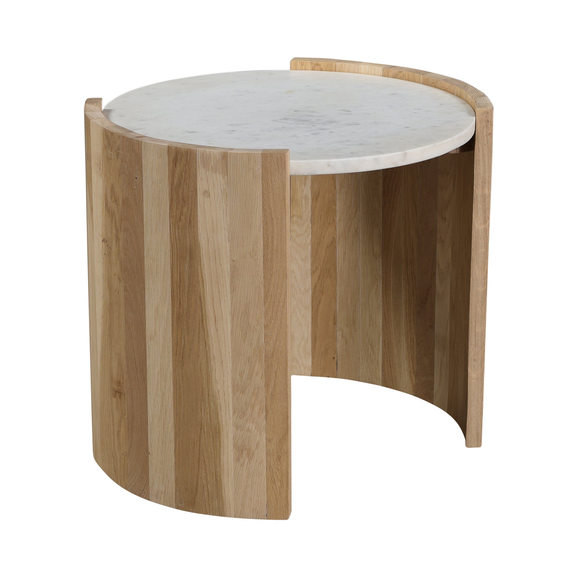 A lunar-like tablescape of raw beauty, elevate your interiors with the stunning modern details of the Dala marble & oak side table. Bring this French art Deco-inspired silhouette to your inner circle, with curved base detailing in solid oak - the organic wild grains are emphasized with delightful repose. Unfailingly stylish, this design is perfect for layering into your space as a sculptural and sinuous accent table with natural characteristics that only add to its utter charm.