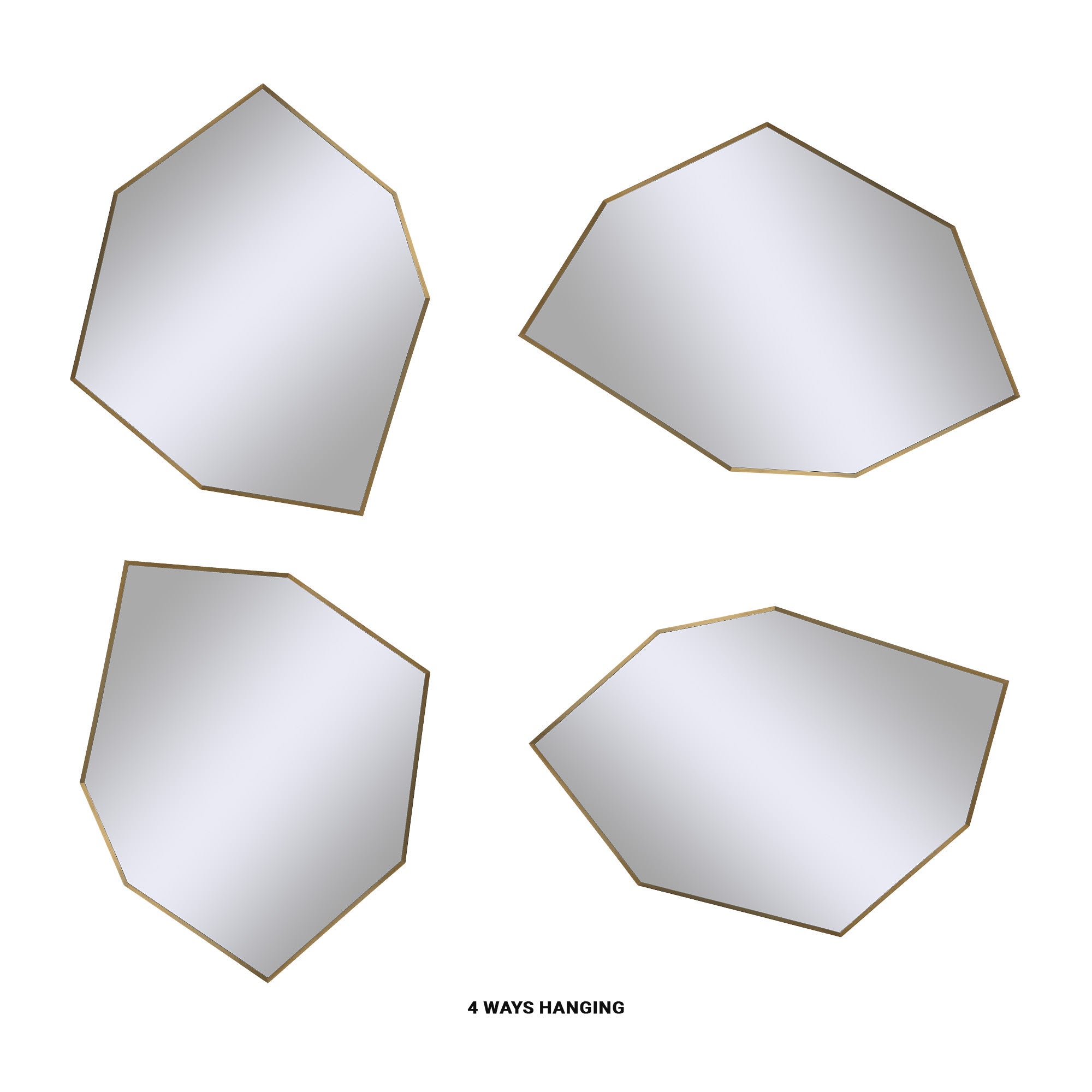 Geometric influences take the spotlight in this contemporary glass mirror design. With strong angles and an artistic structure, this piece serves as a work of art in the home – in addition to providing everyday function. The mid-size dimensions make this satin brass framed mirror perfect for hanging above a prominent piece of furniture, be it a bench, sofa or entryway table.