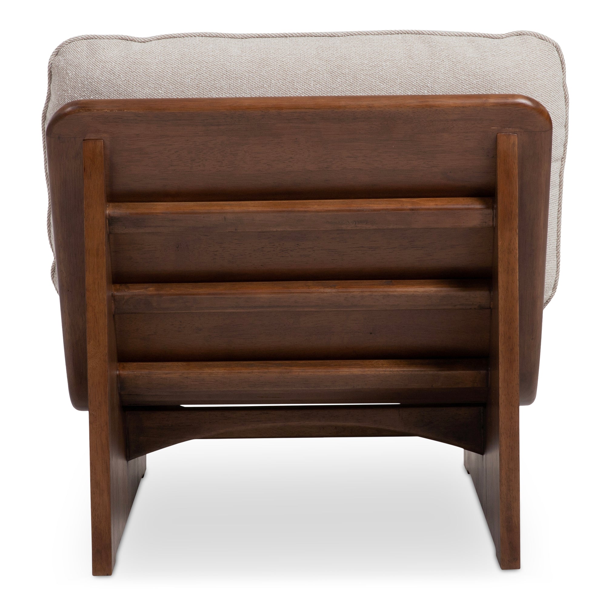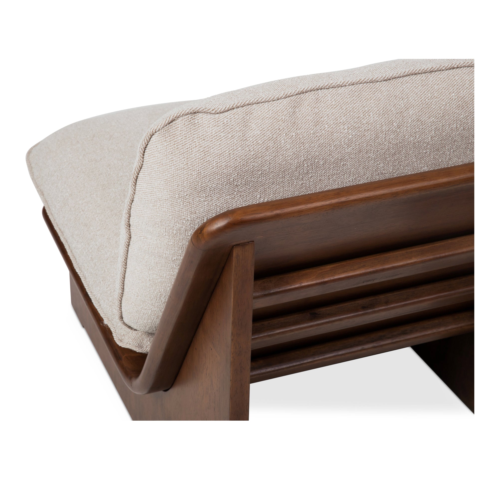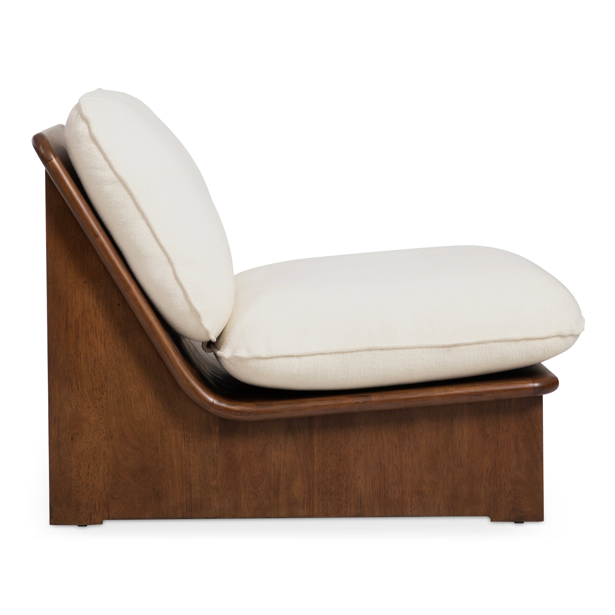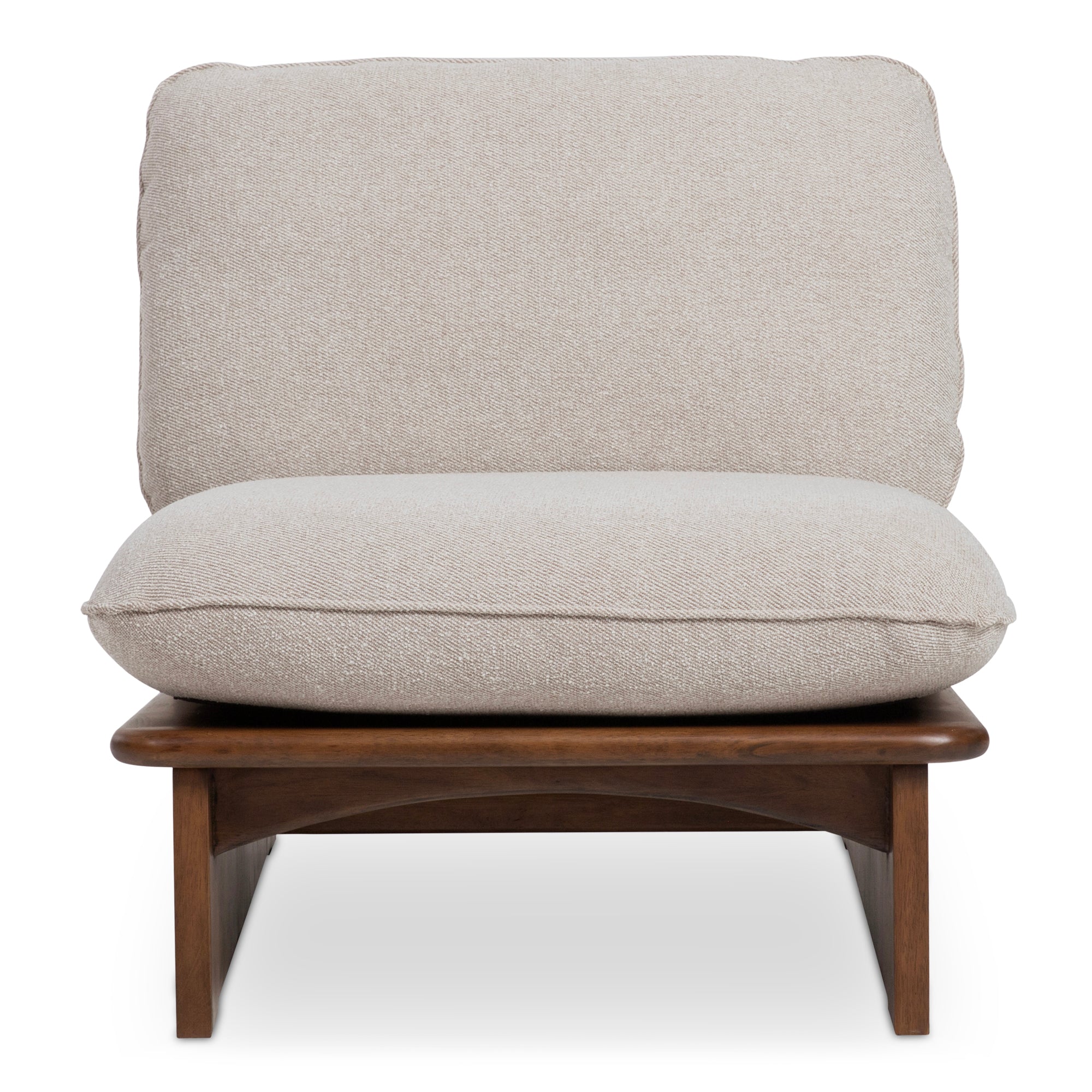 The Edwin accent chair is rich with 70s influence with its armless and low-slung profile. A harmonious blend of warm, textured neutrals and organic materials, the seat is upholstered in sumptuous fabrics over a wood frame, adding an element of natural sophistication, perfectly complementing its understated elegance.