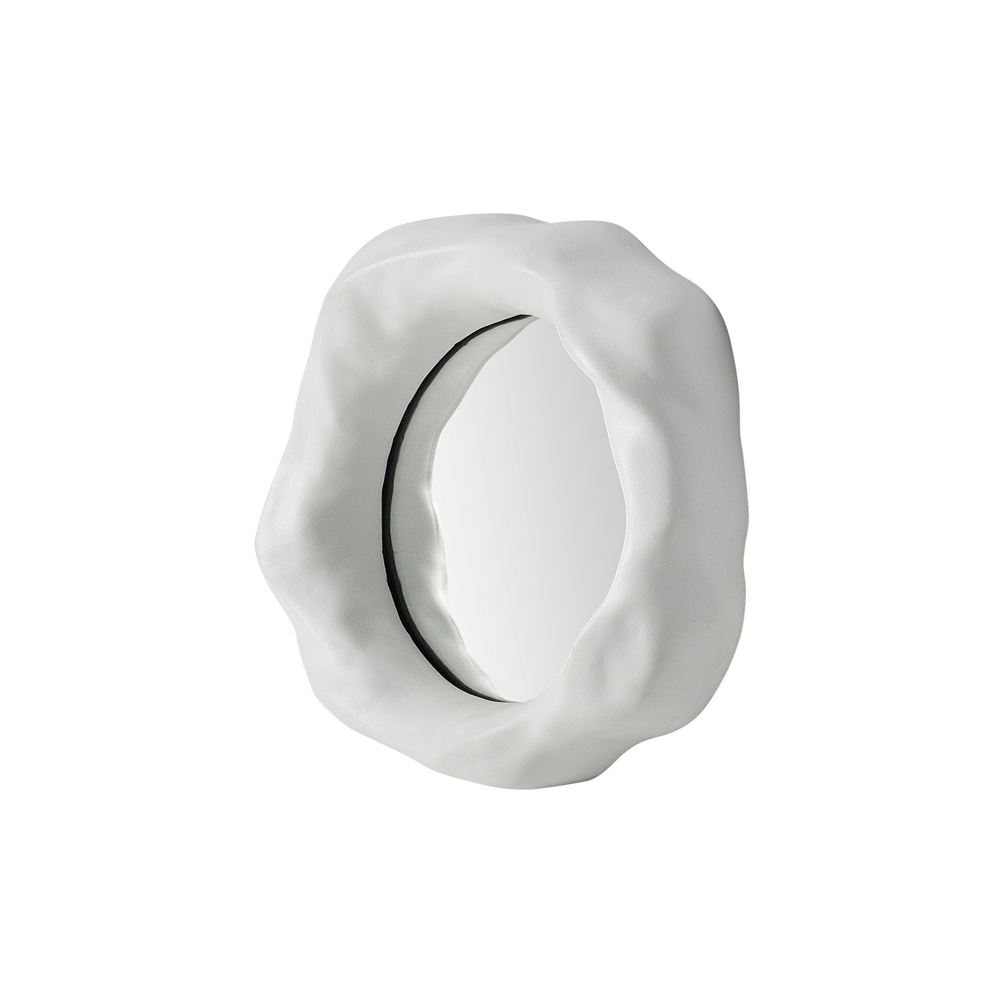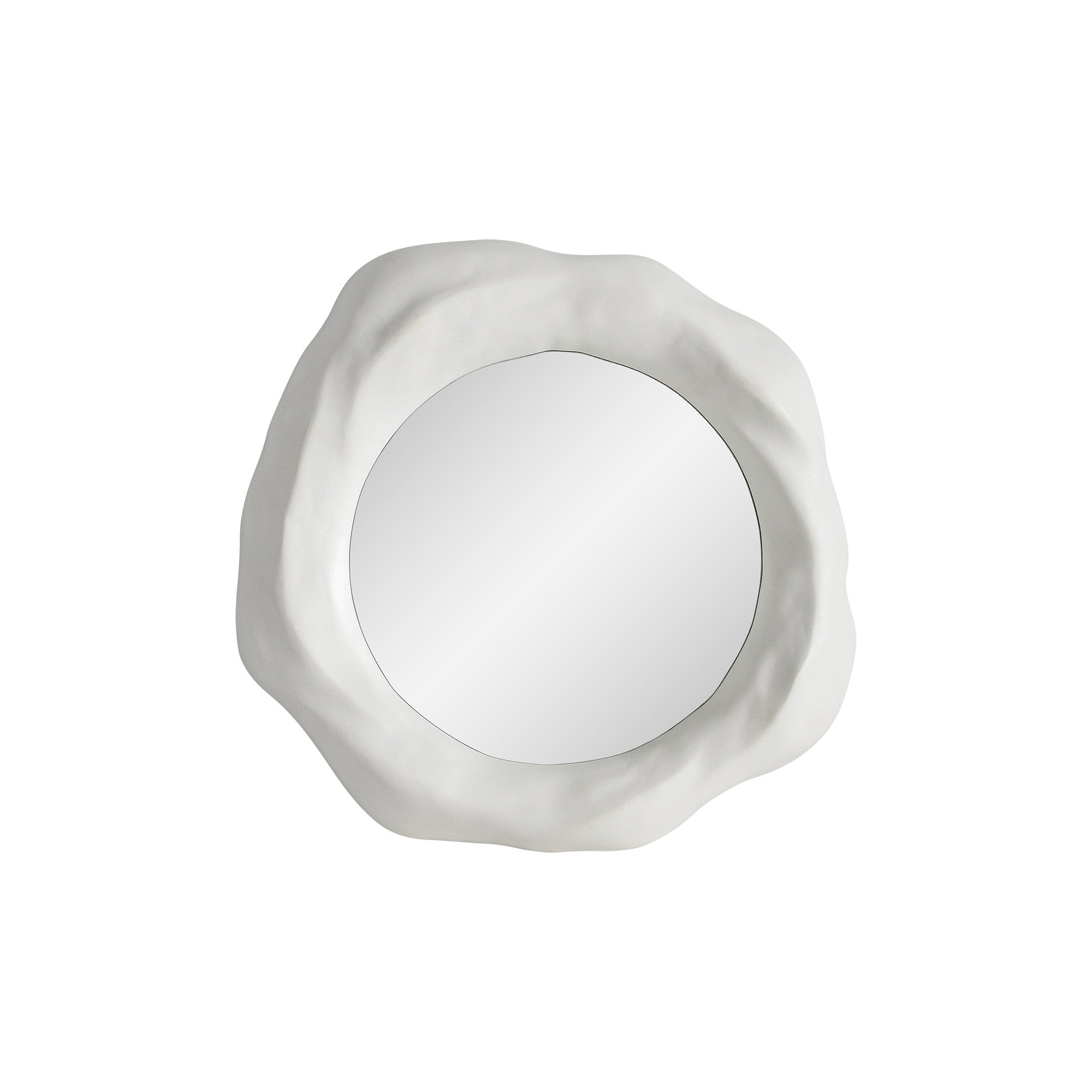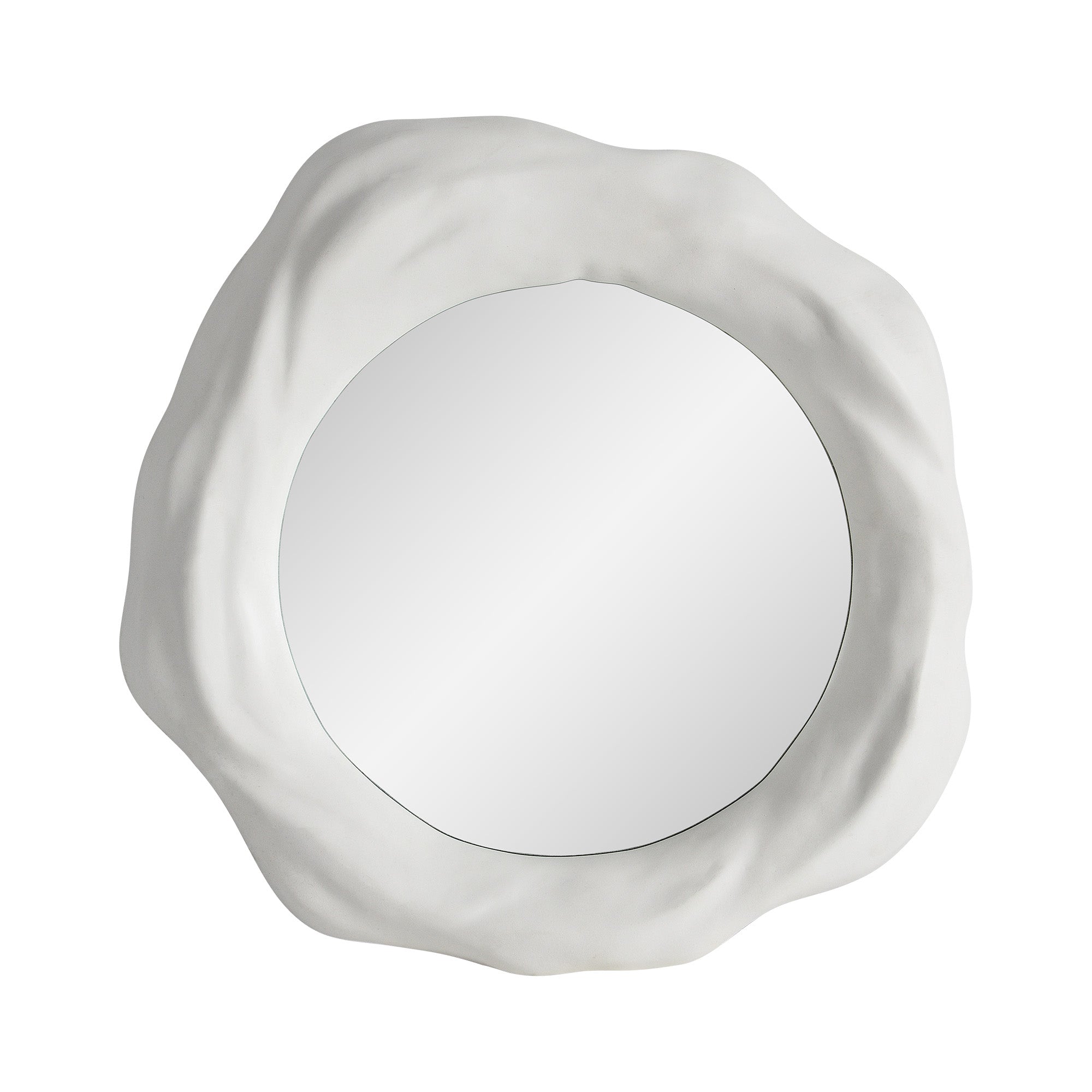 artistic expression meets utility in this set of three mirrors. Featuring uniquely shaped, off-white frames, these mirrors are optimally suited for a homeowner with a modern, creative interior. While the largest mirror is best for moments of reflection, the two accompanying designs help to enhance the impact and expand the feeling of the room they hang within overall.