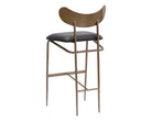 A unique mid-century modern inspired barstool crafted in India. Features seat in bravo portabella faux leather with a sculpted seatback and frame in black steel. Suitable for various dining, kitchen and bar spaces of all sizes. Also available in 100% genuine charcoal black leather with a sculpted seatback and frame in antique brass iron