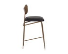 A unique mid-century modern inspired counter stool crafted in India. Features seat in bravo portabella faux leather with a sculpted seatback and frame in black steel. Also available in 100% genuine charcoal black leather with a sculpted seatback and frame in antique brass iron. Suitable for various dining, kitchen and bar spaces of all sizes.