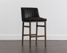 An urban designed stool featuring bold vertical channel tufting on the seat and back in faux leather. Finished with a rustic bronze steel frame and stretchers. Great for residential and commercial placements. Suitable for various dining, kitchen and bar spaces of all sizes. Handle With Care: This design has been crafted with faux leather. Faux leather is manufactured to reflect the natural characteristics of leather; as such, colour variations, markings, wrinkles, grooves, and light scratches are appreciated characteristics. No two pieces will be alike. Visit our Product Care page for more information on how to ensure the lasting beauty of this piece.