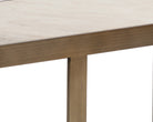 Warm tones and sleek modern lines define the Kamali Side Table. The beige rectangular marble tabletop is beautifully outlined by an antique gold powder coated stainless steel base. It's the perfect addition to any living space. Coffee table version also available. As marble is a natural material, unique veining, pitting, fissures, micro-cracks and colour variations are all characteristics that add to the uniqueness and beauty of each piece.