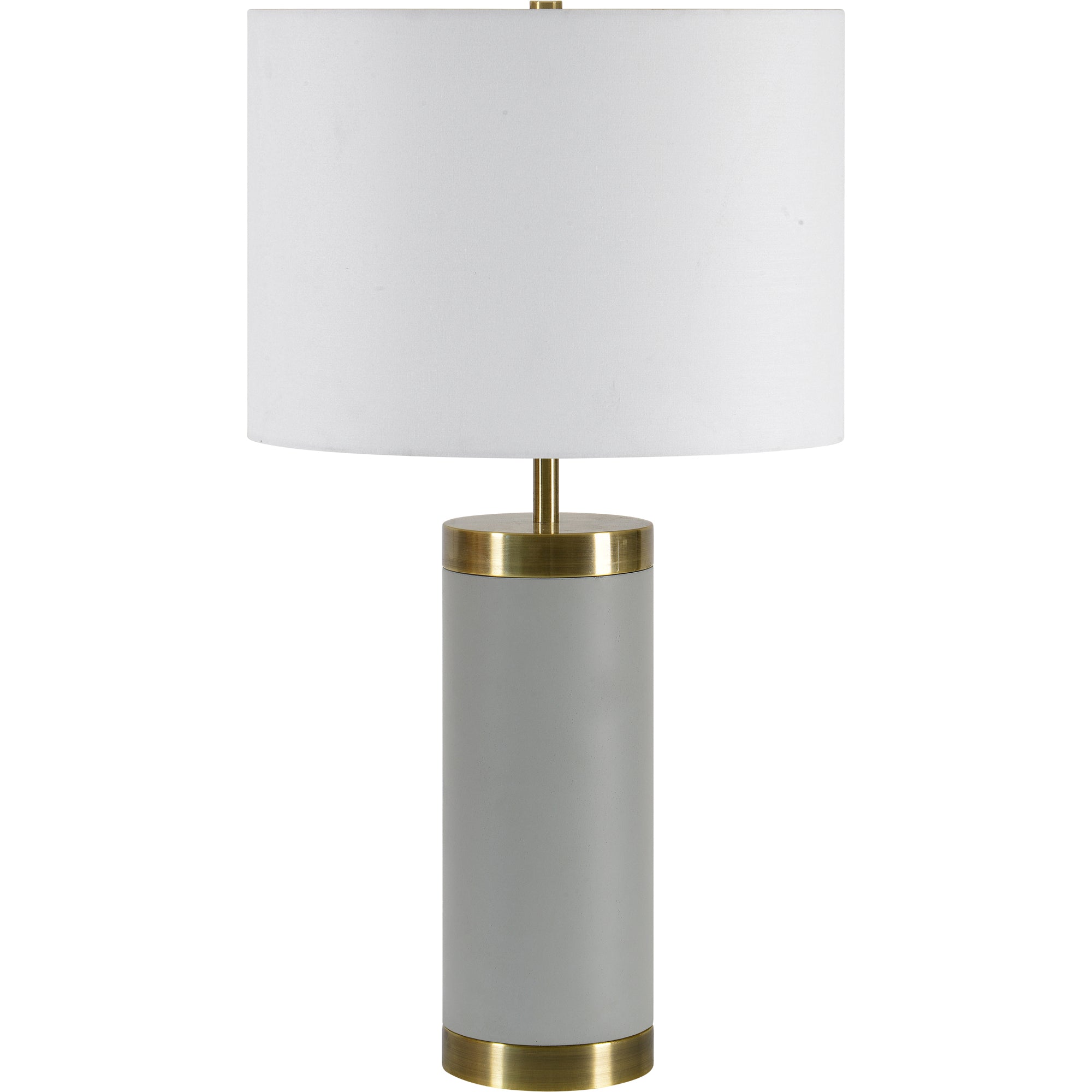 At once on-trend and timeless, this table lamp elevates the aesthetic appeal of the contemporary interior. Its soft palette of light grey and antique brushed brass base, with an off-white shade, creates an environment that is soft and welcoming. Its design offers for plethora of styling opportunities.