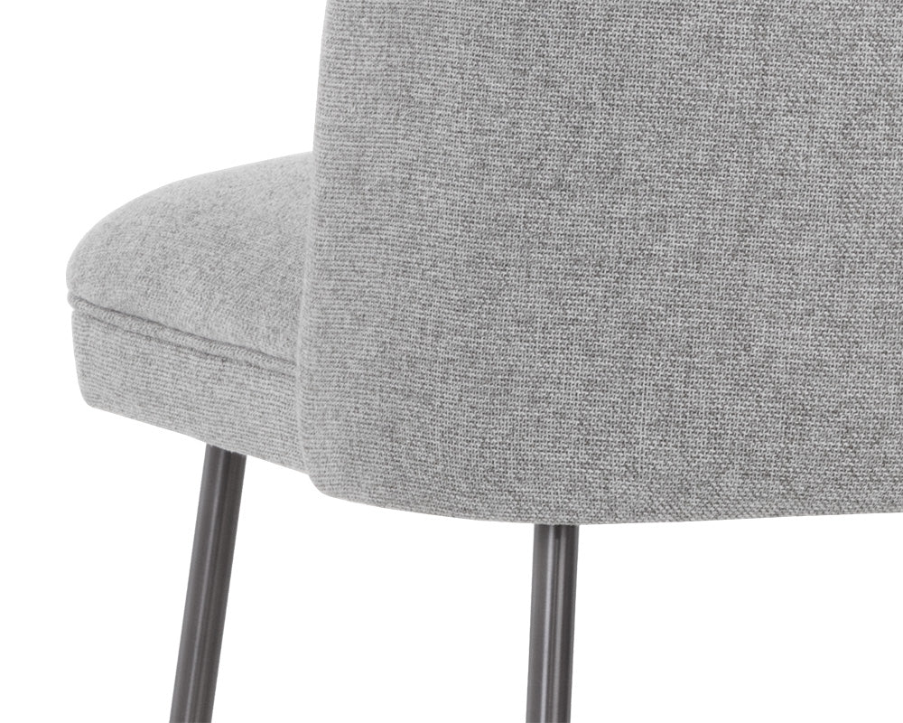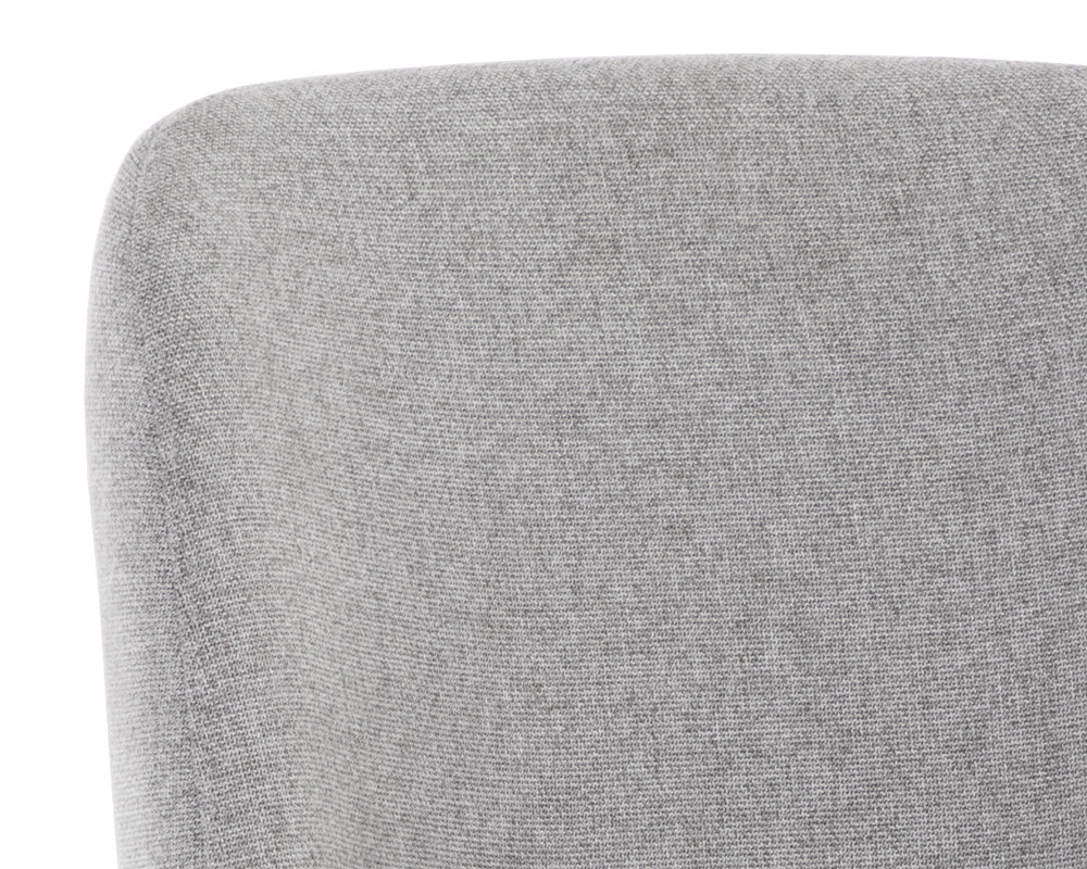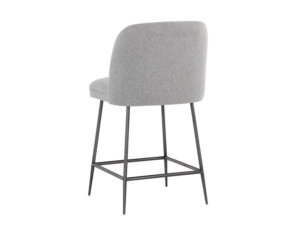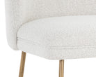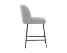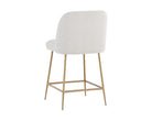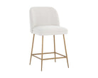 Chic and sophisticated, this stunning counter stool will dazzle any dining or kitchen space. Features a stylish copenhagen white boucle fabric seat with gold stainless steel legs. Also available in soho grey fabric with grey metal hardware.