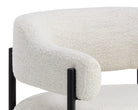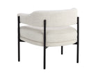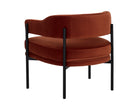 The Lola Lounge Dining Chair exudes contemporary comfort. Subtle curves and open back give a light and airy feel. Luxuriously upholstered in meg rust fabric with plush seating. Finished in a matte black powder-coated iron frame. Also available in merino pearl performance fabric and finished in a matte black iron frame. Performance fabric is moisture repellent, durable and easy to clean.
