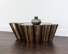 The Lynx Coffee Table features a uniquely organic shape for a bold and eye-catching design. Featuring a frame made from a polyurethane mould with steel and wood in a hand painted antique bronze powder-coated finish. Suitable various living and lounge spaces. Also available in hand painted antique grey powder-coated finish.
