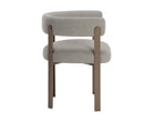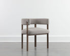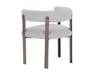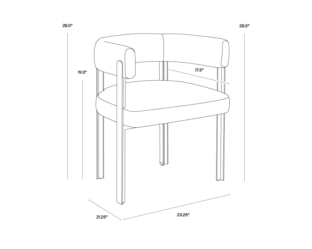 This beautiful dining armchair is designed with style and elegance. Features a contemporary barrelback seat in ernst sandstone or ersnt silverstone fabric with a powder coated steel base in a gold finish.