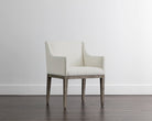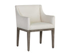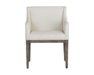 Add modern appeal to any dining space with this comfortable and stylish dining armchair. Upholstered in linoso ivory performance fabric and completed with a solid ash grey oak wood frame. Performance fabric is moisture repellent, durable and easy to clean. As wood is an organic, porous material, these pieces will contain natural variation of texture and may also exhibit fine indentations and cracks. Wood pieces will also display a disparity of colour and grain, and visible knots and burls that add to the character of each piece.