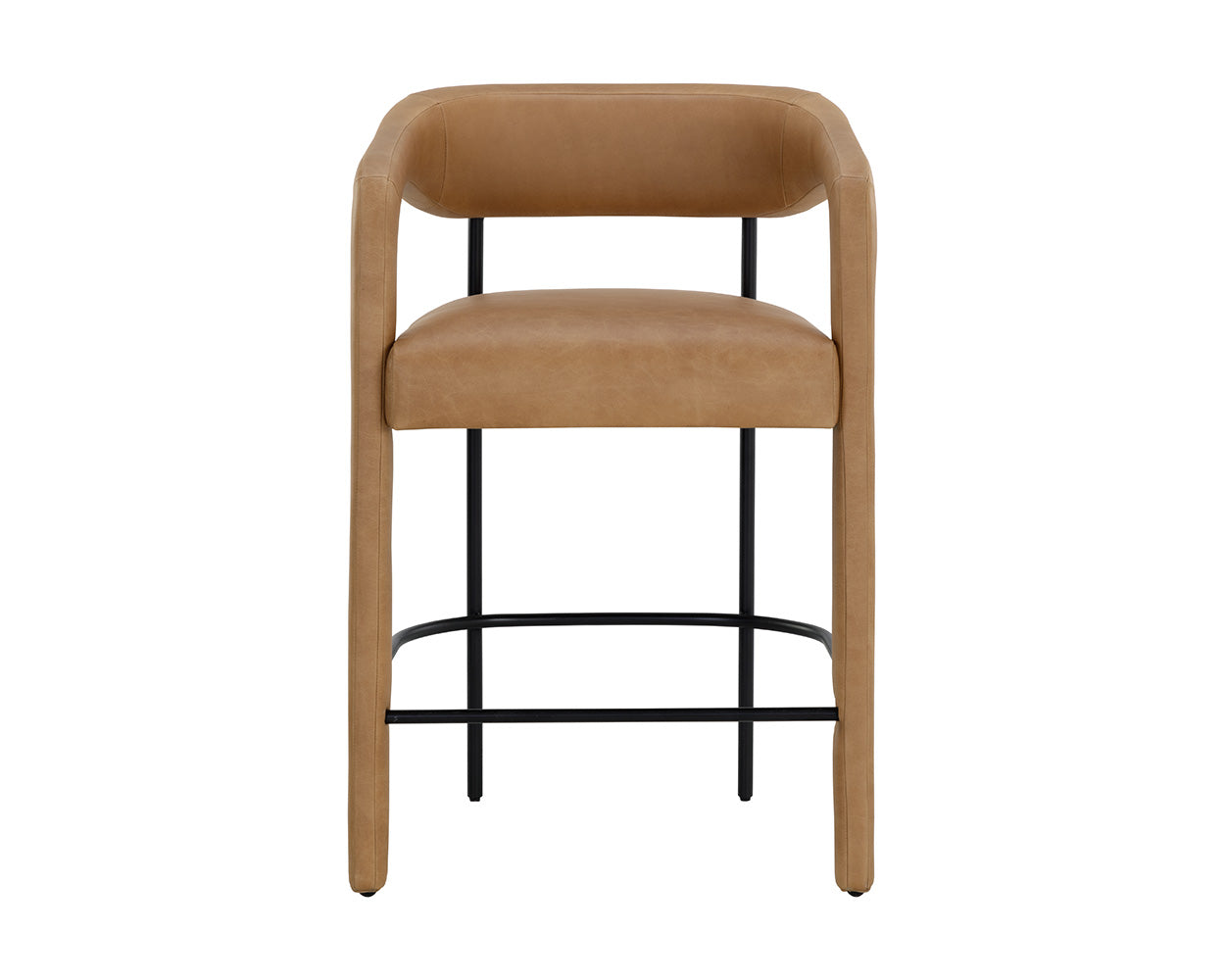 Perfectly poised, the Mavia Counter Stool brings a cool modern edge to any dining area. Our stunning ludlow sesame leather is wrapped around the seat, armrests and front legs while the rest of the black powder-coated frame remains exposed. Handle with Care: This design has been crafted with 100% leather. Leather is a natural material; as such, colour variations, markings, wrinkles, grooves and light scratches are acceptable and appreciated characteristics. No two pieces are alike. Visit our Product Care page for more information on how to ensure the lasting beauty of this piece.