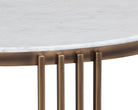 Introduce an element of grandeur to any space with this marvelous coffee table. Features a 21mm solid Carrara white marble top with a 6mm smoked tempered glass bottom. Completed with a stylish metal frame in a rustic bronze finish. Coordinating console and end tables also available. As marble is a natural material, unique veining, pitting, fissures, micro-cracks and colour variations are all characteristics that add to the uniqueness and beauty of each piece.