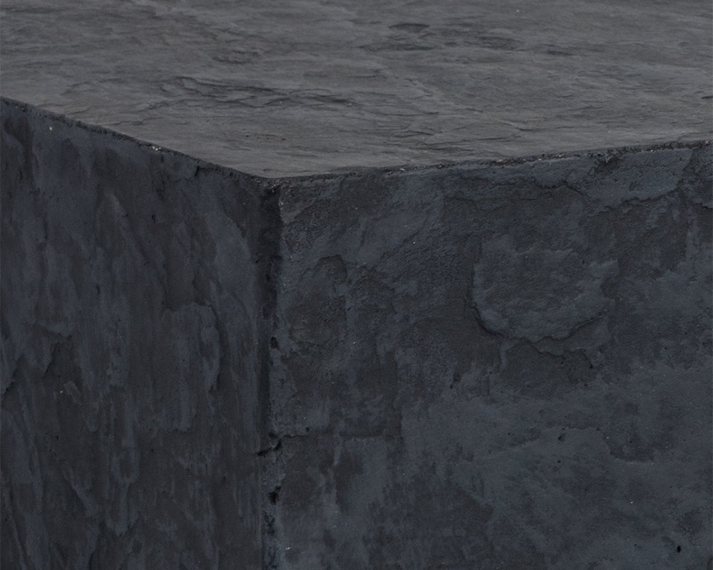 A bold concrete end table. Features an intricately crafted black or brown slate effect finish and completed with a 2" brushed brass base.