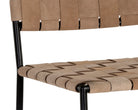 This elevated counter stool offers comfortable seating and unique style. Features a weaved seat in light tan suede or black leather and finished with a black iron frame. Handle with Care: This design has been crafted with 100% leather. Leather is a natural material; as such, colour variations, markings, wrinkles, grooves and light scratches are acceptable and appreciated characteristics. No two pieces are alike. Visit our Product Care page for more information on how to ensure the lasting beauty of this piece.