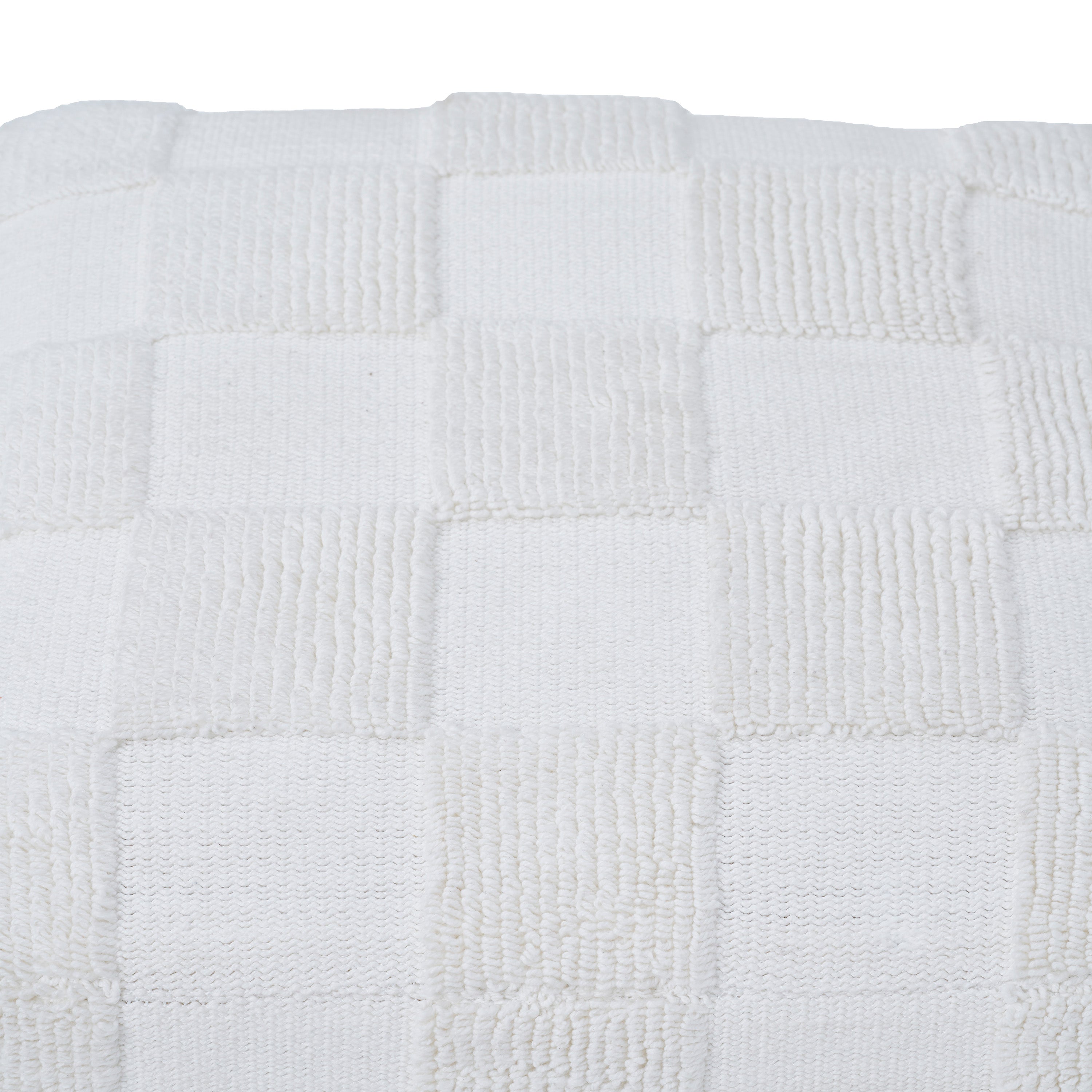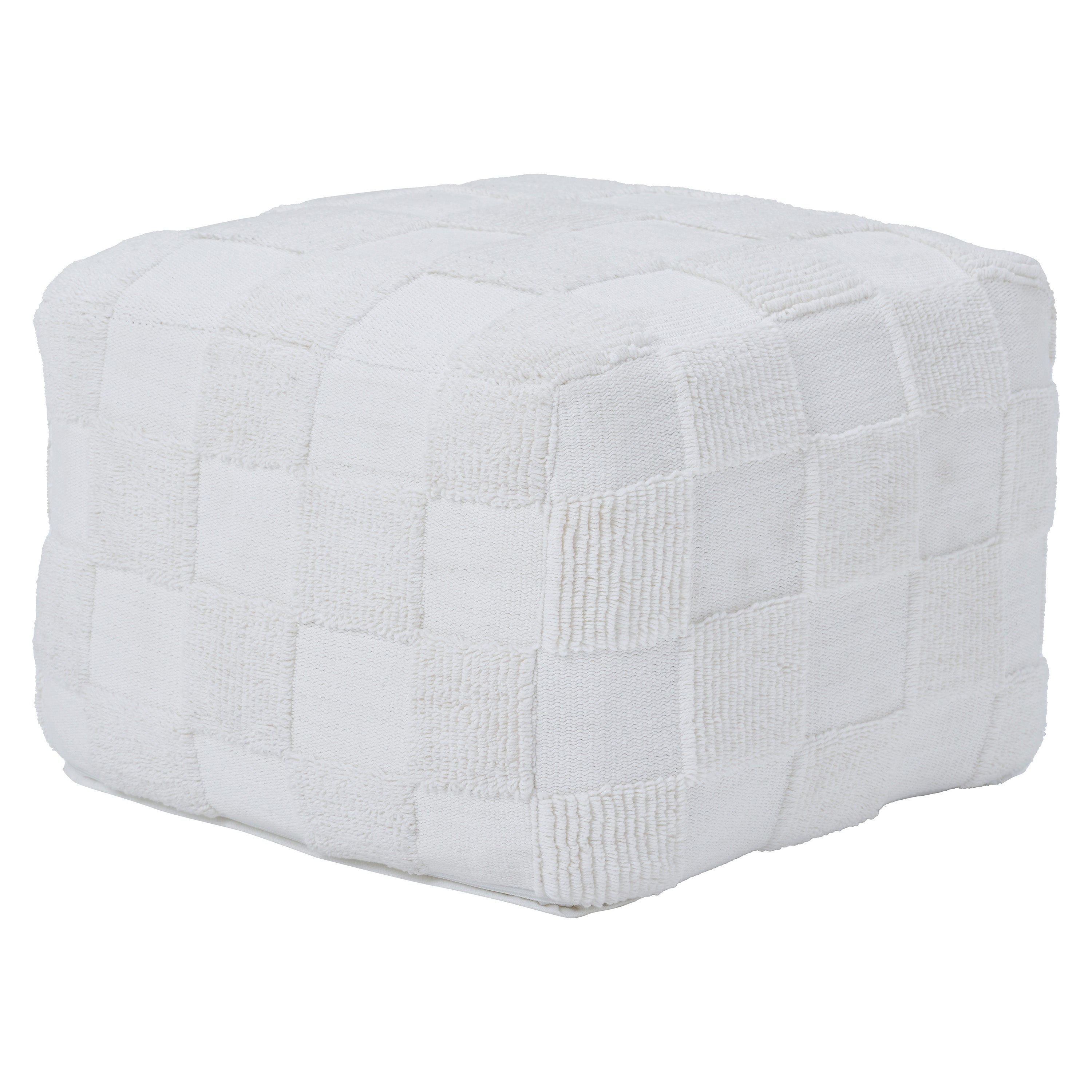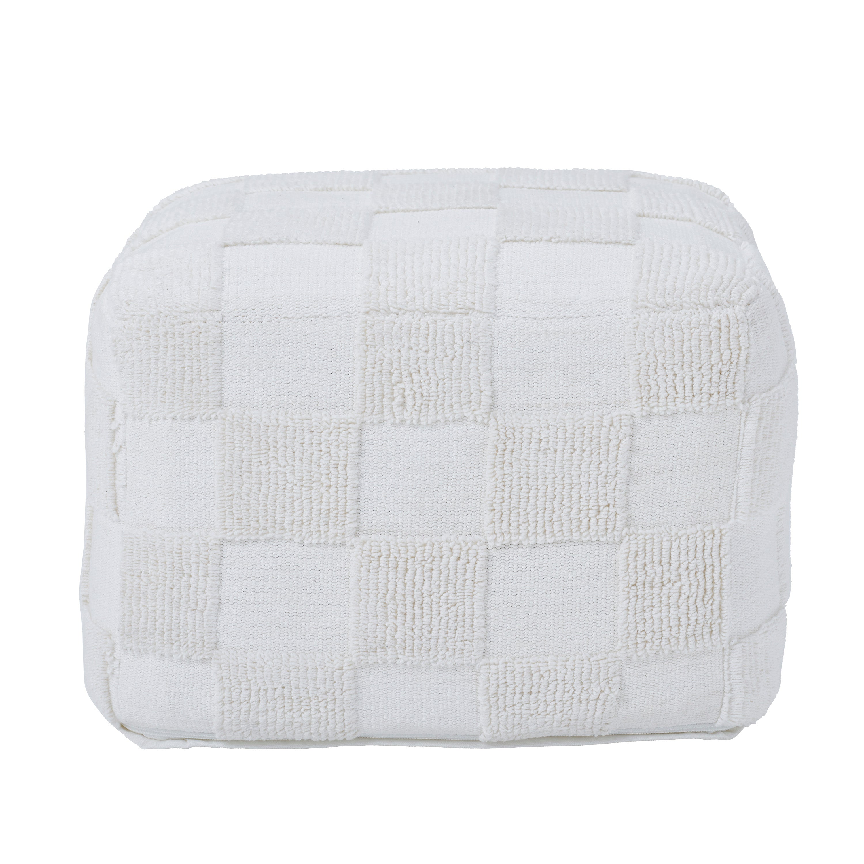 Enhance the comfort and style in your living space with our Payne 18" Wide Pouf in Ivory. Crafted from high-quality 100% cotton, this pouf is built to last and support weights from 154.3 lbs to 176.37 lbs. The unique knitted checkered detailing adds a touch of visual interest to this classic piece. Its sleek ivory finish complements all decor styles, making it a versatile addition to any home.