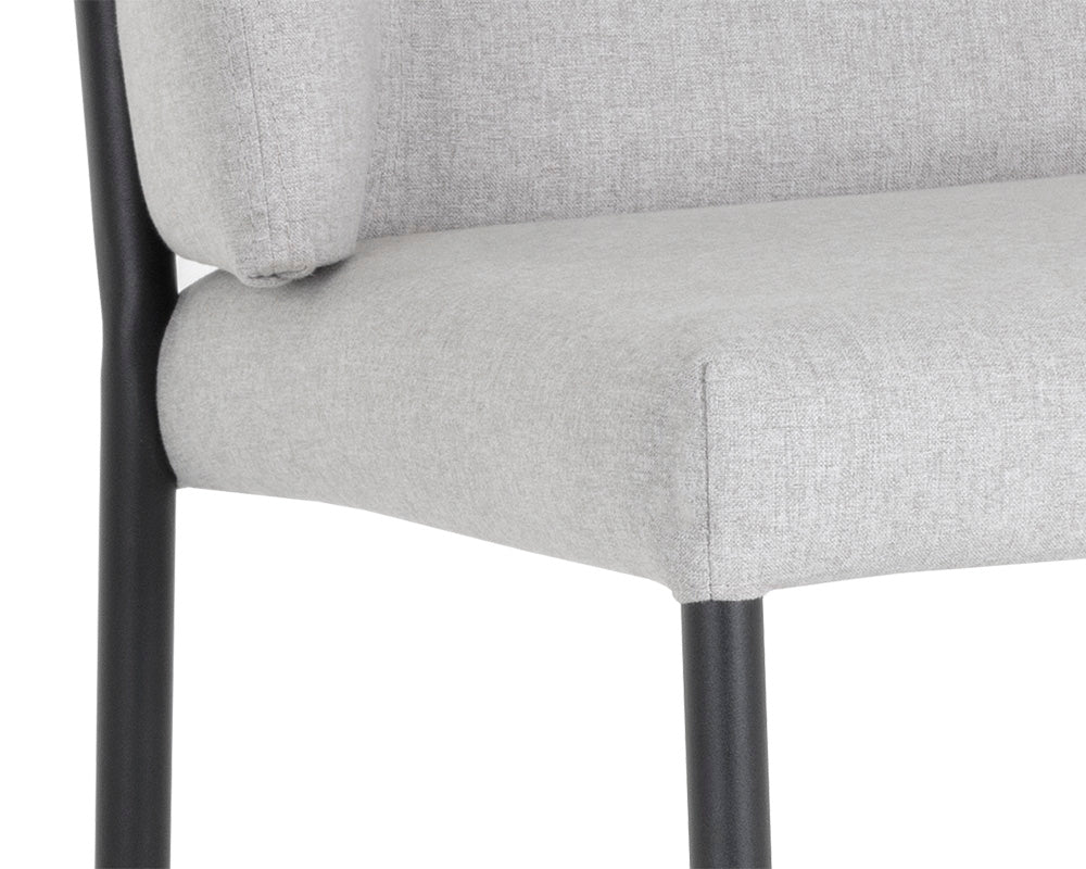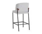 With a clean cut design, this modern counter stool illustrates the beauty of minimalism. Features a two-toned seatback with light grey fabric on the interior, and bravo cognac faux leather on the exterior. Completed with a black powder coated iron frame. Also available in light grey fabric with bravo cognac faux leather. Handle With Care: This design has been crafted with faux leather. Faux leather is manufactured to reflect the natural characteristics of leather; as such, colour variations, markings wrinkles, grooves, and light scratches are appreciated characteristics. No two pieces will be alike. Visit our Product Care page for more information on how to ensure the lasting beauty of this piece.