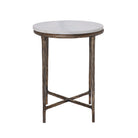 The Pearson Side Table in Antique Brass is a durable and versatile addition to your home. Crafted from sturdy cast aluminum, this table is built to last, ensuring reliability for your everyday needs. With a weight capacity ranging from 17.6 to 22.0 lbs, it provides secure support for your essentials. Its plated finish not only boasts an appealing antique brass look but also shields the table from daily use, preserving its charm over time. The sleek design and versatile antique brass finish effortlessly complement any decor style, adding a touch of elegance to your space.