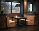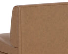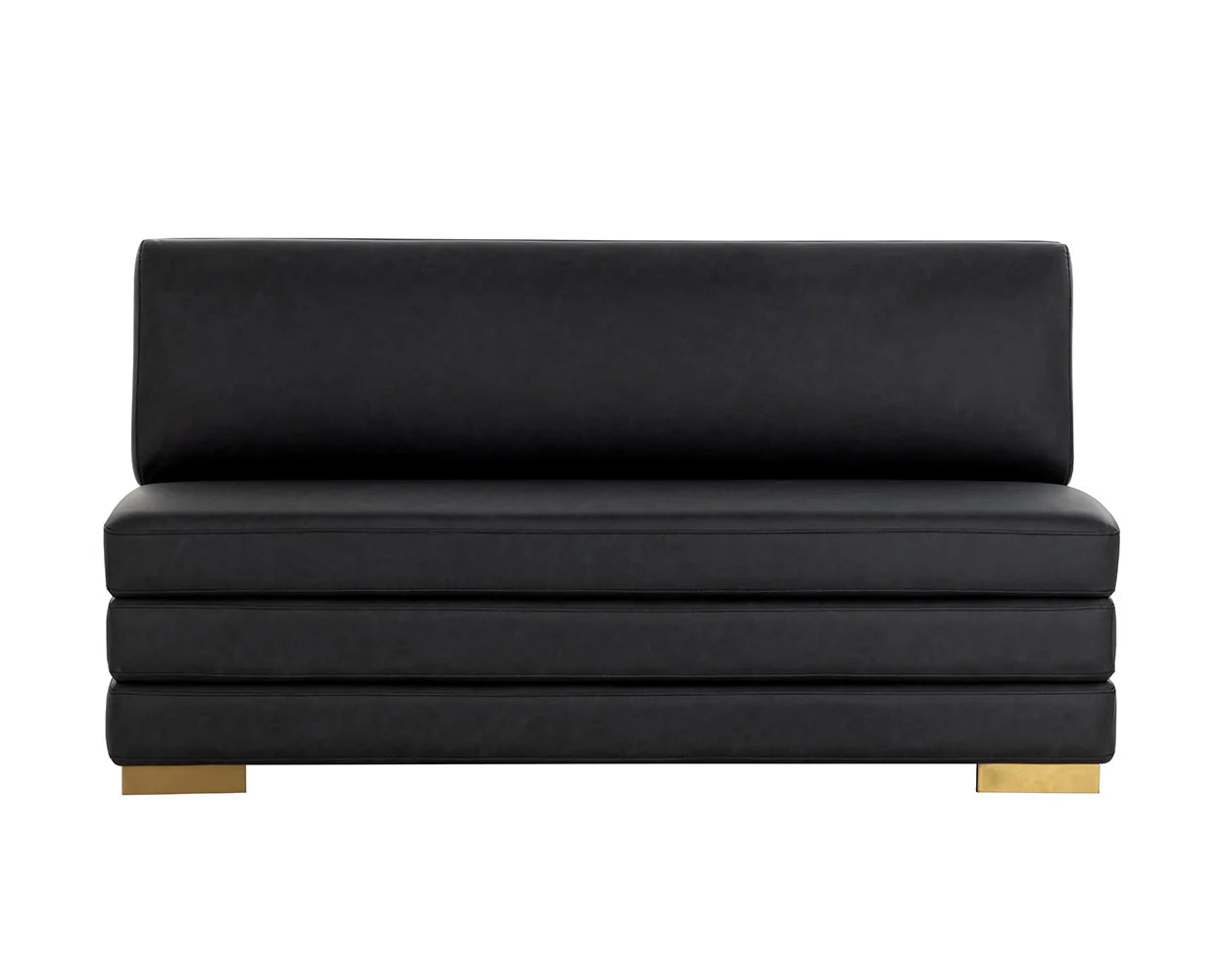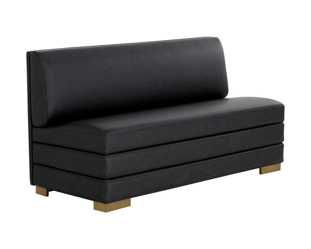 The streamlined design of the Radcliff Banquette enhances the elegance and comfort of your favourite nook. Upholstered in milliken cognac or bravo black faux leather with gold stainless steel legs, it is a combination of durability and style. Handle With Care: This design has been crafted with faux leather. Faux leather is manufactured to reflect the natural characteristics of leather; as such, colour variations, markings, wrinkles, grooves, and light scratches are appreciated characteristics. No two pieces will be alike. Visit our Product Care page for more information on how to ensure the lasting beauty of this piece.