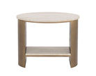 Versatile and timeless, the Roshni End Table will fit any setting. A natural travertine shelf and tabletop brings added warmth to the mid-century modern design. Completed with a powder-coated antique gold iron base.