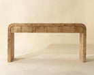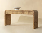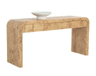 The Rowena Console Table is characterized by its smooth yet sculpted lines that are characteristic of modern design. Sleek and stylish, this burl veneer console table offers unique patterns that are inherent in burl veneer, providing an elevated shape and style.