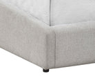 This upholstered bed from is designed with comfortable curves and horizontal channel tufting for a modern look. Stocked in belfast heather grey fabric with solid rubberwood legs. No box spring is required and slats are included.