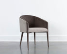 With an alluring barrel back seatback, this stunning lounge chair will add a touch of comfort to any space. Features an upholstered exterior and seat in ernst sandstone fabric, and completed with coordinating meg ash fabric on the interior seat and legs.