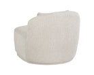 Boasting a design that is all about that curve appeal, this marvelous swivel armless chair will add shape to any space. Stocked in dove cream fabric as well as shadow grey and completed with a wooden frame. Coordinating sofa and ottoman also available.