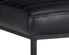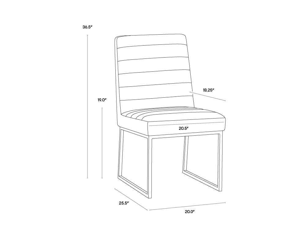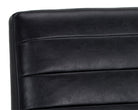 A masculine and modern dining chair. Features horizontal channel tufting on the interior seat and seatback with a sleek black powder coated steel frame. Stocked in coal black and tobacco tan faux leather. Handle With Care: This design has been crafted with faux leather. Faux leather is manufactured to reflect the natural characteristics of leather; as such, colour variations, markings, wrinkles, grooves, and light scratches are appreciated characteristics. No two pieces will be alike. Visit our Product Care page for more information on how to ensure the lasting beauty of this piece.