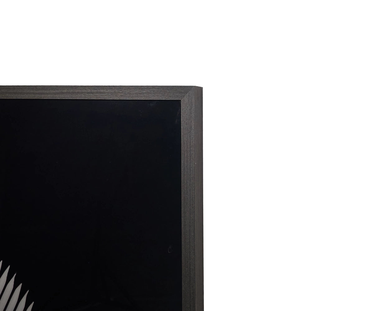 This alluring print on acrylic from our Luxe Art collection will set the mood in contemporary spaces. The stark black and white image evokes a sense of both classical and 21st century imagery. Finished with a charcoal wood floater frame. Due to the reflective nature of acrylic, images on site may not capture the artisanal characteristics precisely.