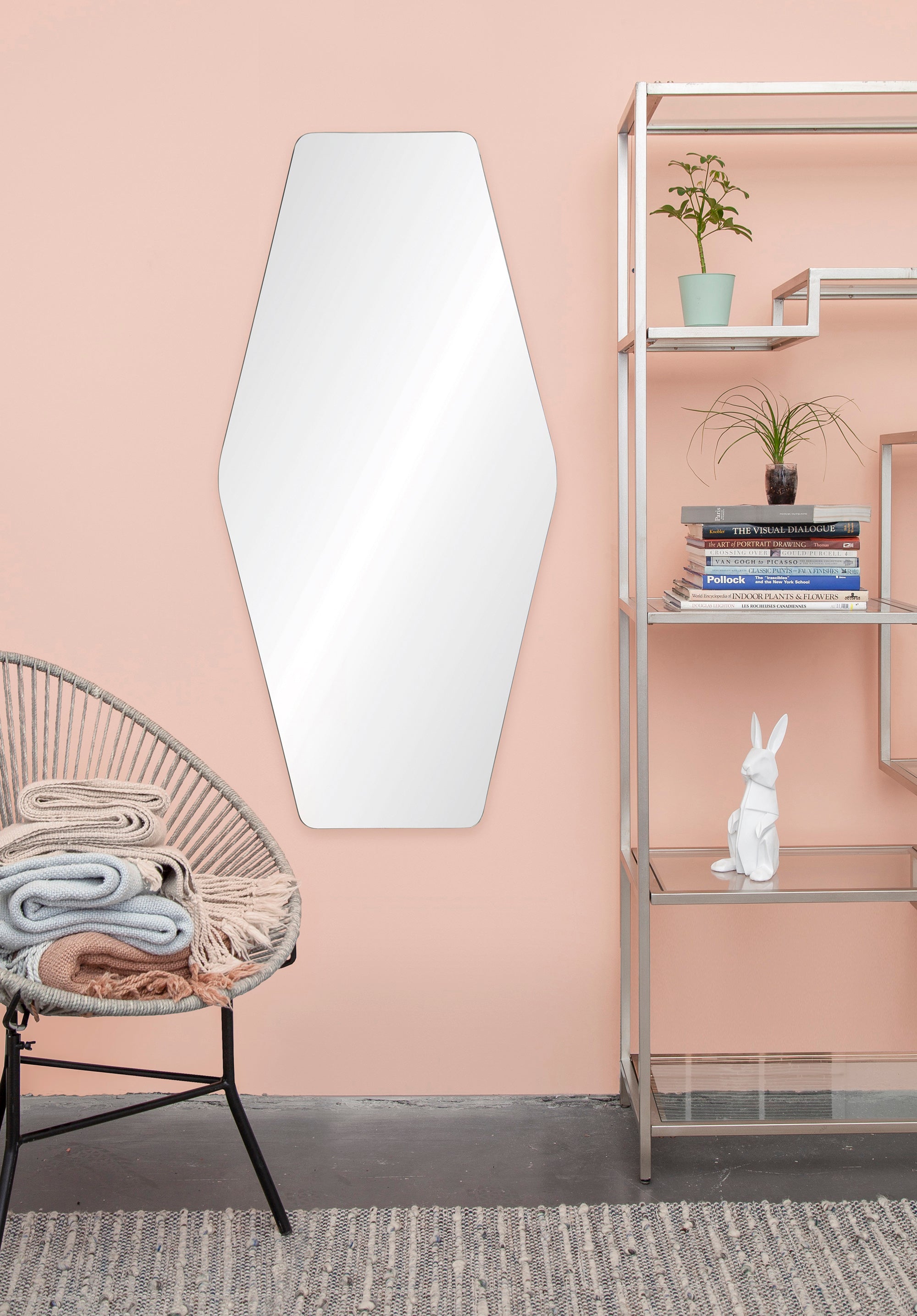 Smooth, elongated lines and a unique structure combine to form a piece built to take it all in. This all-glass standing mirror has a simplistic style allowing it to seamlessly blend in both traditional and modern interiors.